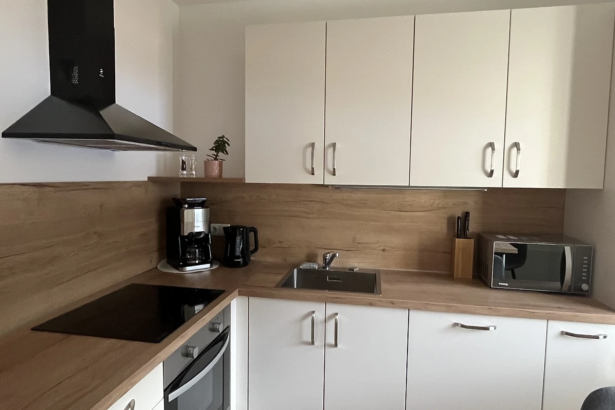 Die voll ausgestattete Küchenzeile lässt keine Wünsche offen: Sie finden hier eine Spülmaschine, Mikrowelle, Wasserkocher, Kaffeemaschine und alles, was Sie zum Kochen benötigen. Frische Bettwäsche ist selbstverständlich vorhanden und auch ein TV sorgt für Unterhaltung. Familien sind herzlich willkommen – ein Kinderbett ist auf Wunsch verfügbar.