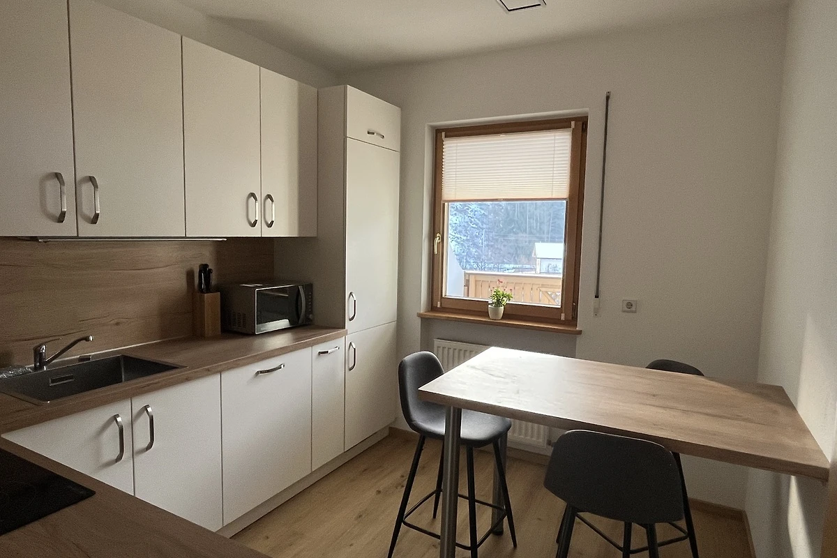 Das Interieur ist von hochwertigen Holzelementen geprägt und vermittelt ein angenehm warmes Wohngefühl. Die Wohnung ist ausschließlich für Nichtraucher geeignet und auch für längere Aufenthalte bestens vorbereitet.