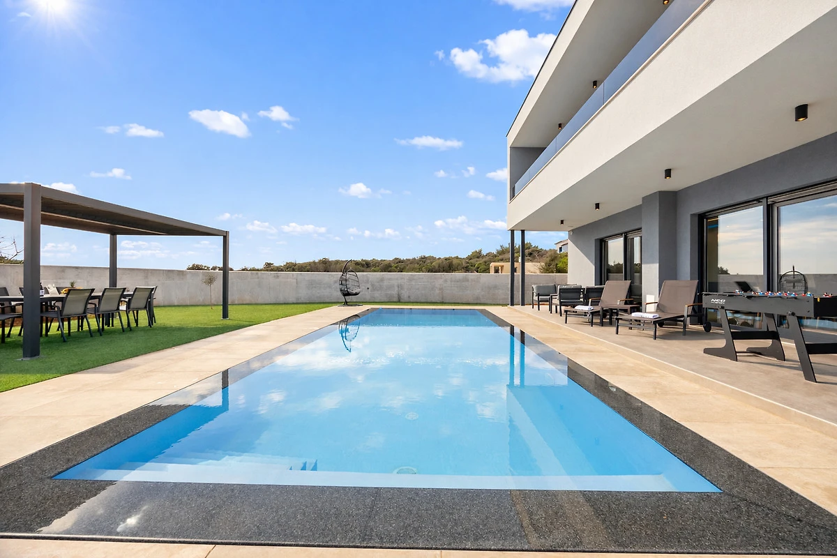 In ruhiger Umgebung in Pula, im Stadtteil Štinjan gelegen, ist die Villa Rosignola die perfekte Wahl für einen erholsamen Urlaub in modernem und komfortablem Ambiente. Bereits von der Terrasse der Villa bietet sich ein schöner Meerblick, das nur 1 km entfernt ist.