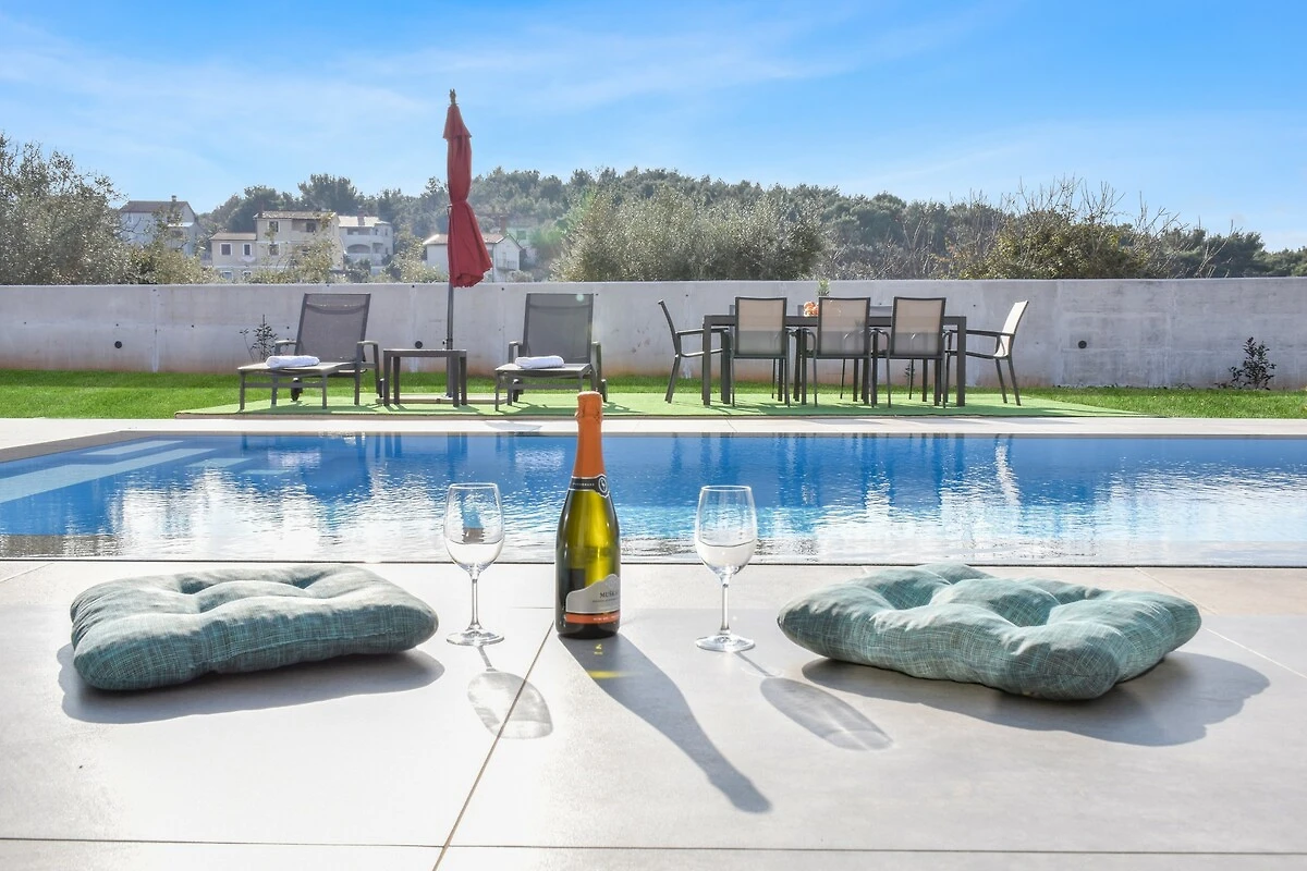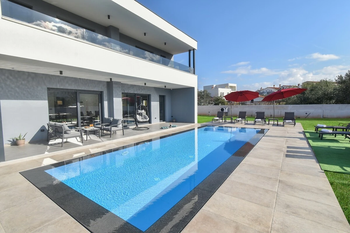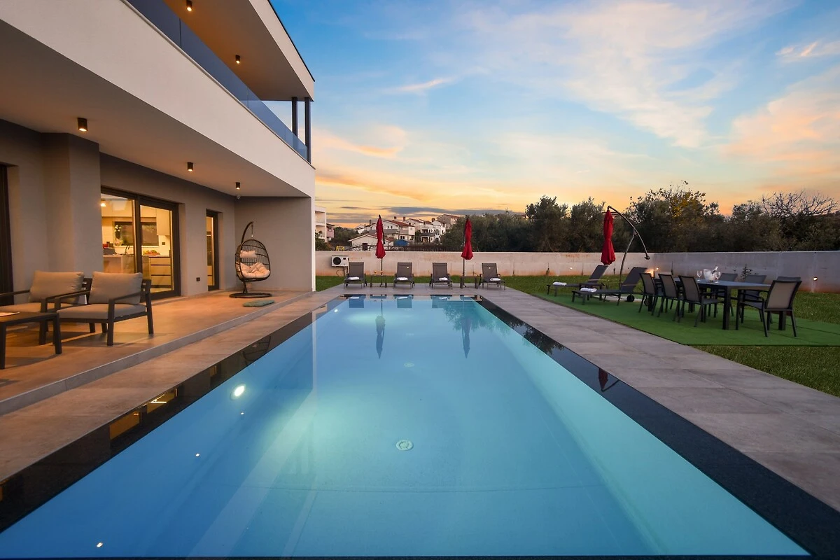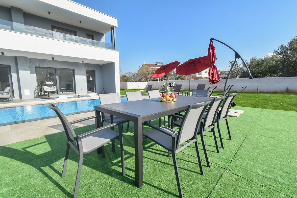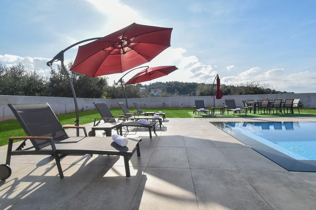 In ruhiger Umgebung in Pula, im Stadtteil Štinjan gelegen, ist die Villa Rosignola die perfekte Wahl für einen erholsamen Urlaub in einem modernen und angenehmen Ambiente. Bereits von der Terrasse der Villa bietet sich ein schöner Blick auf das Meer, das nur 1 km entfernt ist.
