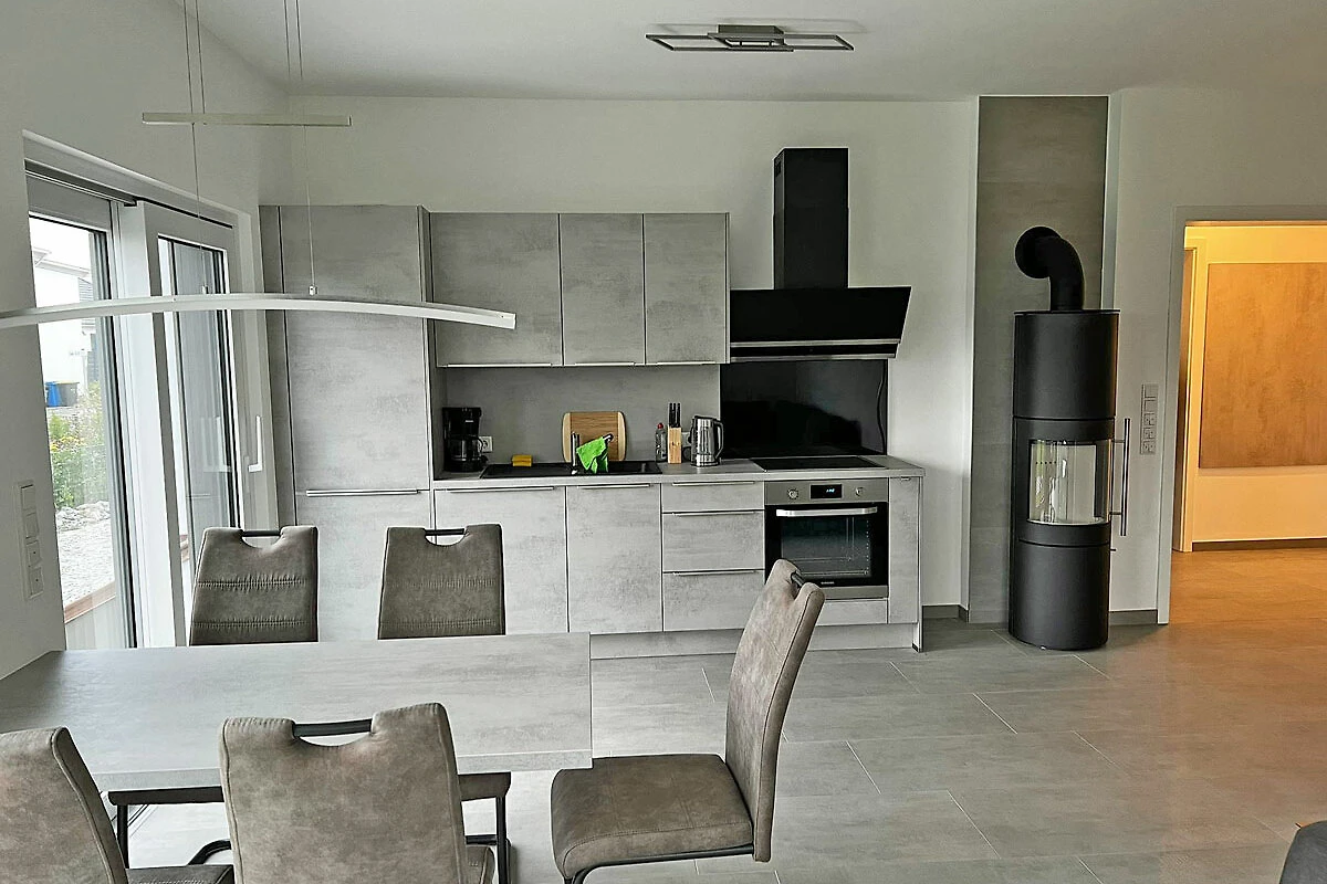 Ferienhaus mit 4 Wohneinheiten. Die Wohnung ist modern eingerichtet und ist für maximal 5 Personen geeignet und verfügt über 2 Schlafzimmer und 1 Bad. Die voll ausgestattete Küche lässt keine Wünsche offen. Über den Wohn- Essbereich gelangen Sie in den Garten mit Liegenwiese. Die Grillecke mit Gartenmöbeln lädt zum Entspannen und Genießen ein.