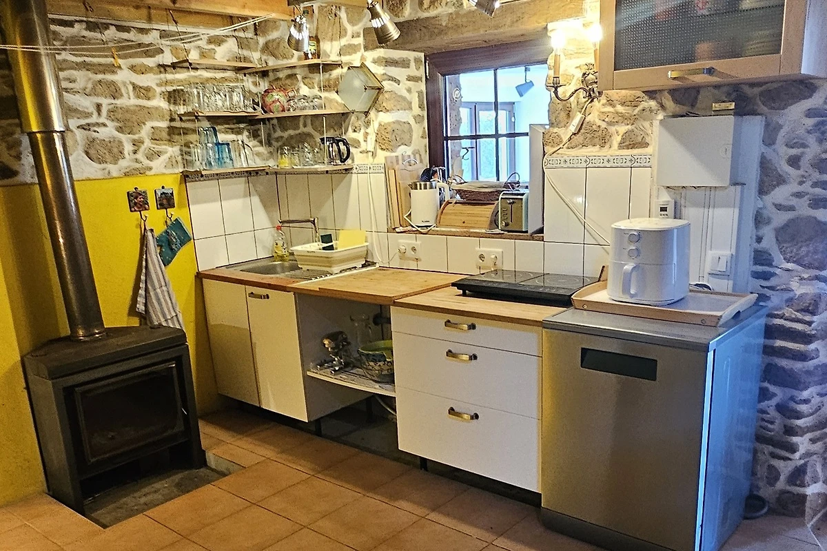 Willkommen im Ferienhaus Quinta do Convento in Pedrogao Grande – Ihr Rückzugsort für entspannte Urlaubstage zu jeder Jahreszeit. Das Haus bietet auf 90 m² ausreichend Platz für bis zu vier Gäste und verfügt über zwei Schlafzimmer und ein Badezimmer. Genießen Sie Ihr Frühstück auf dem Balkon oder lassen Sie den Tag im gepflegten Garten mit gemütlicher Sitzecke ausklingen. Für kühle Abende sorgt ein Kamin im Wohnbereich, der eine angenehme Atmosphäre schafft. Die voll ausgestattete Küche lässt keine Wünsche offen: Hier finden Sie Herd, Airfryer, Kühlschrank, Gefrierschrank, Geschirrspüler, Kaffeemaschine, Wasserkocher und alles, was Sie zum Kochen benötigen. Bettwäsche ist selbstverständlich vorhanden.