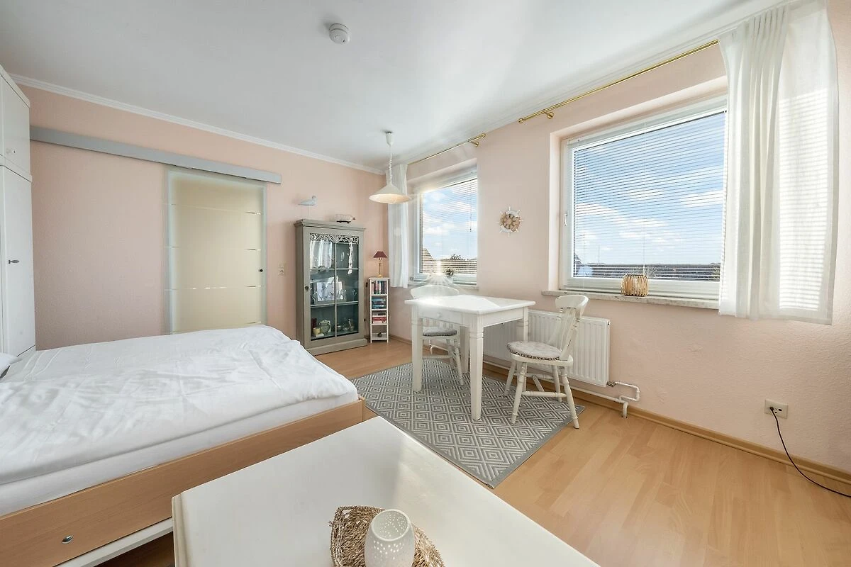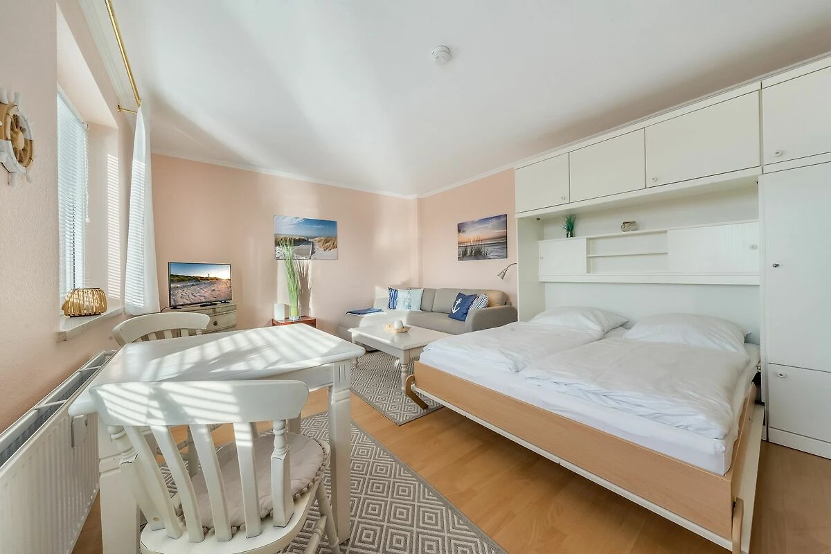 Das helle, freundliche 1-Zimmer-Apartment „Flut“ in Hörnum auf Sylt verbindet gemütliches Ambiente mit praktischem Komfort, ideal für kleine Budgets, die dennoch Wert auf eine angenehme Unterkunft legen.