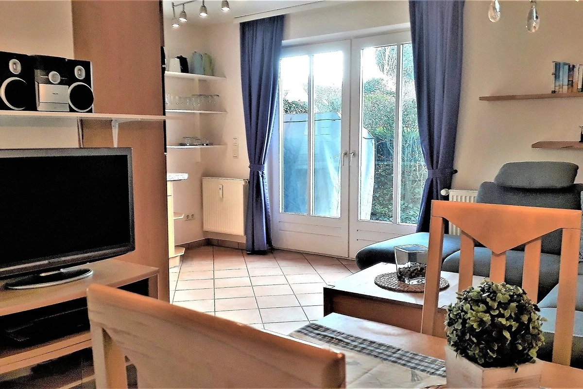 Zentral in Wyk liegt diese Wohnung in einer Ferienhausanlage auf einem grossen Grundstück mit viel Platz zum Toben und Spielen für unsere kleinen Gäste. Im Untergeschoss des Hauses finden Sie eine Sauna (gegen Gebühr), einen Ruheraum, Waschmaschine und Trockner (gegen Gebühr) zur gemeinschaftlichen Nutzung. Gerne stellen wir Ihnen ein Kinderbett und einen Hochstuhl bereit. Ein PKW- Stellplatz befindet sich direkt am Domizil.