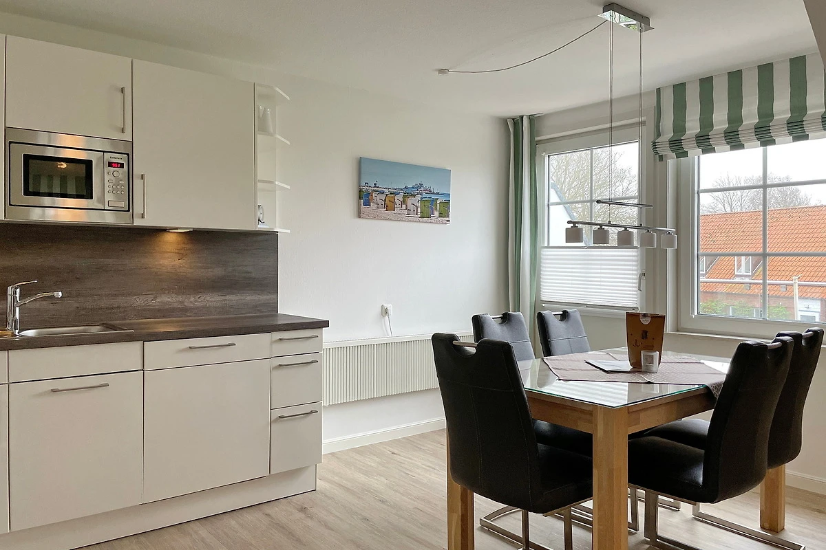 Am Grünstreifen in Wyk befindet sich diese geschmackvoll eingerichtete Wohnung für Familien in ruhiger Lage unweit des Strandes.