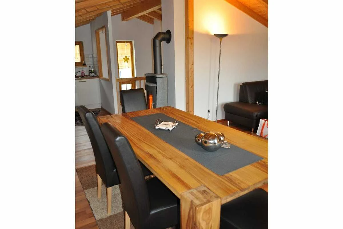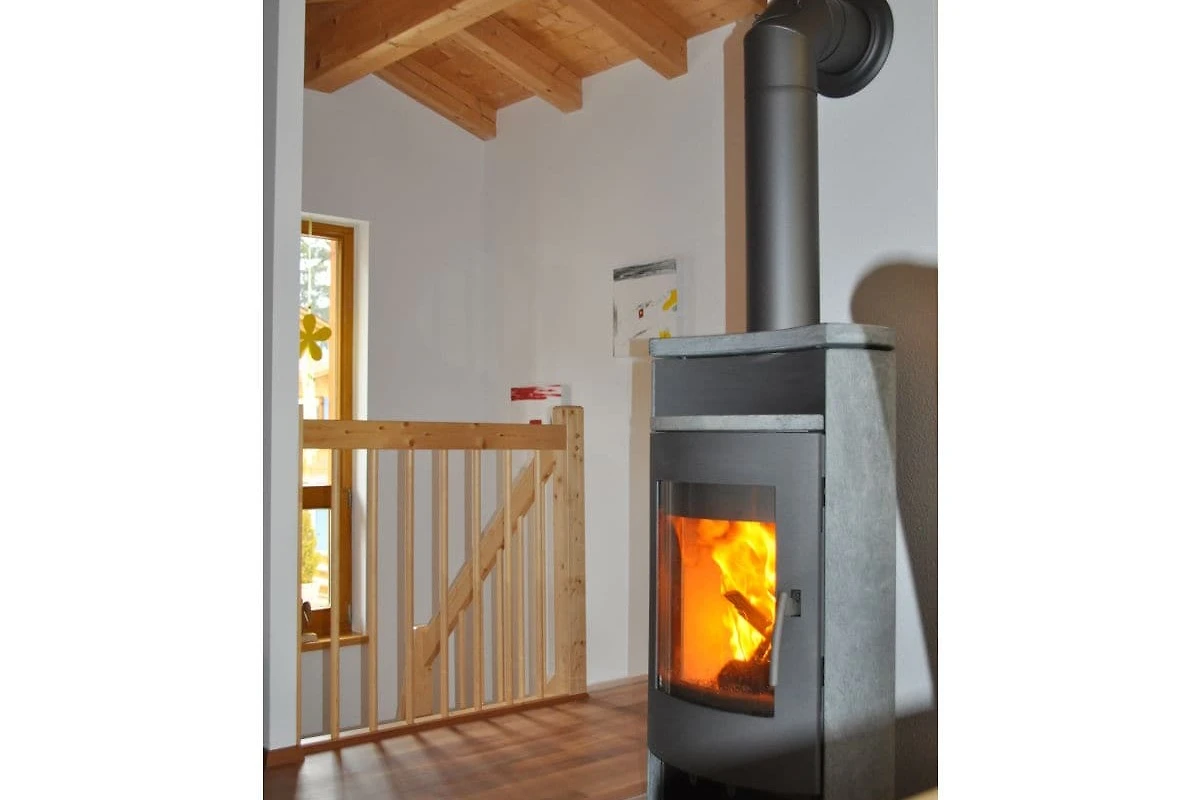 Die Fußbodenheizung im Obergeschoss und der Kaminofen schaffen zu jeder Jahreszeit eine besonders gemütliche Atmosphäre – ob verschneiter Winterabend oder frischer Sommermorgen.