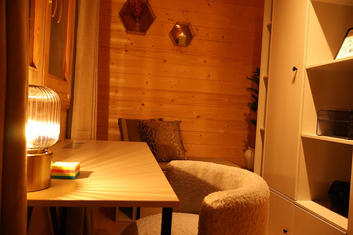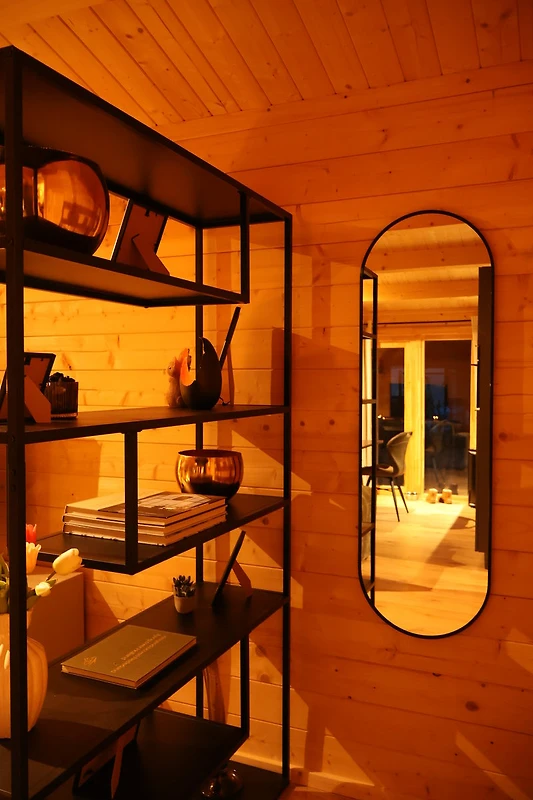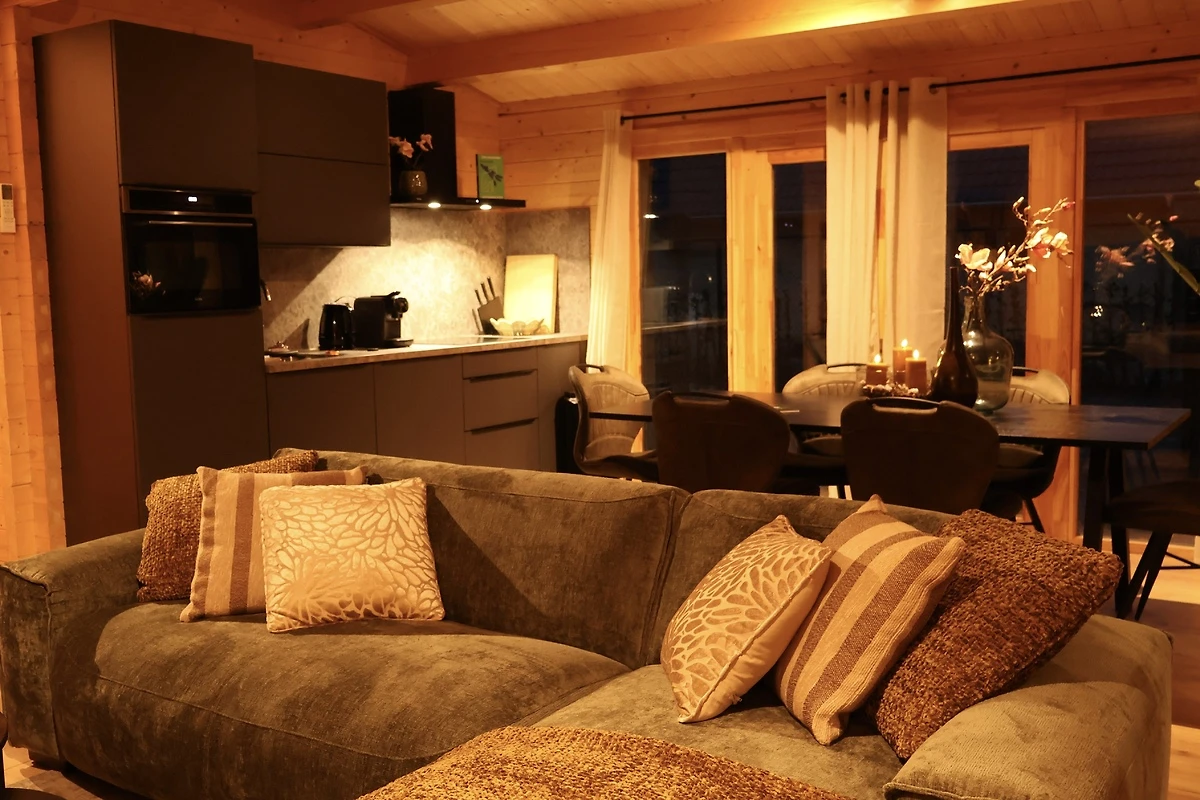 Willkommen im Ferienhaus Erholungsurlaub Meijel – Ihrem Rückzugsort in den Niederlanden! Dieses charmante Holzhaus bietet auf 70 m² Wohnfläche Platz für bis zu 4 Gäste. Das großzügige Wohnzimmer lädt mit einer bequemen Couch, stilvollem Holzboden und einem modernen TV zu entspannten Abenden ein. Die offene Küche ist voll ausgestattet: Hier finden Sie eine Spülmaschine, Mikrowelle, Wasserkocher, Kaffeemaschine und alles, was das Herz begehrt. Ein Esstisch mit Blick ins Grüne schafft eine angenehme Atmosphäre für gemeinsame Mahlzeiten.