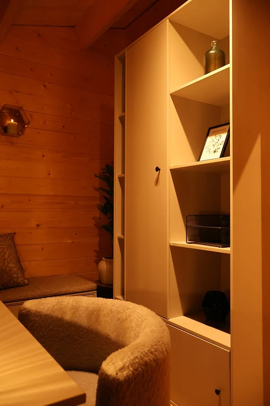 Das Schlafzimmer ist liebevoll eingerichtet und sorgt für erholsamen Schlaf – Bettwäsche ist selbstverständlich vorhanden. Für Familien stehen ein Babybett und ein Hochstuhl bereit. Das Badezimmer verfügt über eine Dusche, einen Haartrockner, sowie Waschmaschine und Trockner für längere Aufenthalte. Ein Bügeleisen erleichtert die Pflege Ihrer Garderobe.