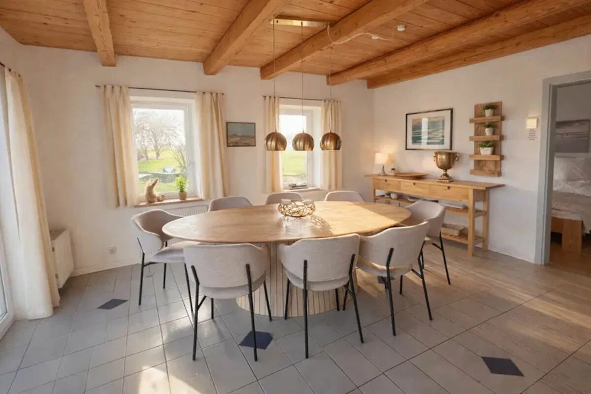 Willkommen im Ferienhaus „Oland“ – einem großzügigen, lichtdurchfluteten Urlaubsdomizil für bis zu 8 Personen, das moderne Wohnqualität mit der wohltuenden Ruhe der nordischen Landschaft verbindet. Auf 120 qm, verteilt über zwei Ebenen, finden Familien, Freunde oder mehrere Generationen reichlich Platz für entspannte Urlaubstage.