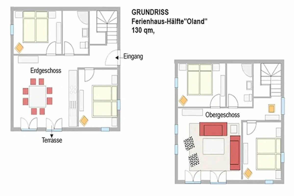 Auf jeder Etage stehen Ihnen zwei gemütliche Doppelschlafzimmer sowie ein großzügiges Duschbad zur Verfügung. Die offen gestaltete Wohnküche ist Treffpunkt für gemeinsame Mahlzeiten und lange Abende, während der helle Wohnbereich mit großen Fensterflächen den Blick in die Weite der Landschaft freigibt.