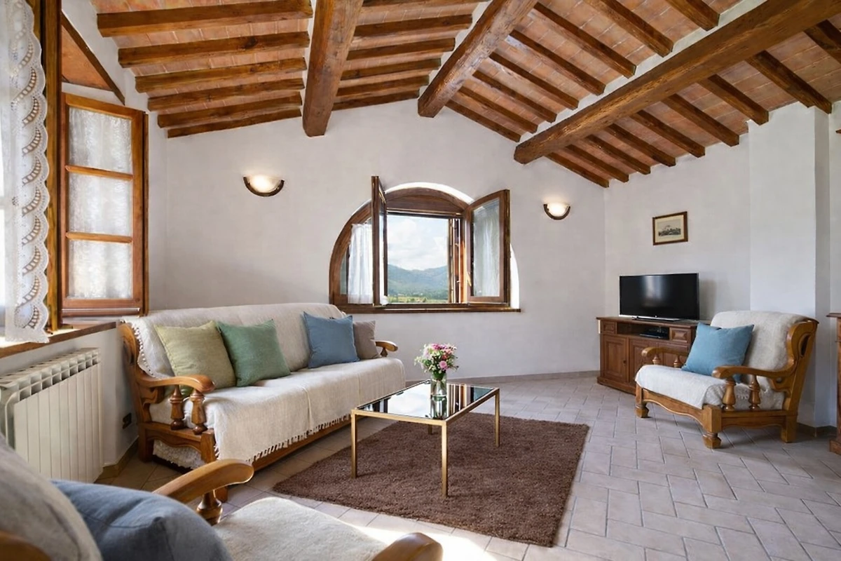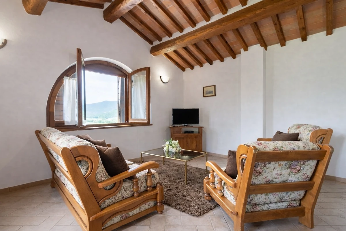 Willkommen im Ferienhaus Erholungsurlaub in Lisciano Niccone – Ihr perfektes Domizil für unvergessliche Gruppenreisen und Familienfeste! Das weitläufige Anwesen bietet mit 550 m² Wohnfläche Platz für bis zu 24 Gäste. Eingebettet in eine grüne Gartenlandschaft mit gepflegtem Rasen und blühenden Pflanzen, genießen Sie sonnige Tage am großzügigen Swimmingpool mit Blick auf die umliegenden Hügel. Auf der Terrasse und im Hof laden bequeme Sitzgelegenheiten und ein schattiger Essbereich zum Verweilen ein; ein BBQ-Grill sorgt für gesellige Abende im Freien. Für Kinder stehen Fahrräder, ein Babybett und ein Hochstuhl bereit. Die moderne Küche ist mit Spülmaschine, Kaffeemaschine, Wasserkocher und allen wichtigen Geräten ausgestattet. Waschmaschine, Bügeleisen und Haartrockner bieten zusätzlichen Komfort. Im Wohnzimmer sorgt ein Kamin für behagliche Stunden, während Klimaanlage und allergenarme Ausstattung für Wohlbefinden sorgen. Ein TV ist vorhanden. Parkplätze und eine Wallbox für E-Autos stehen ebenfalls zur Verfügung. Bettwäsche und Handtücher sind inklusive. Auch Langzeitmieter und Mechaniker sind herzlich willkommen. Entdecken Sie erholsame Tage in einer charmanten Umgebung, die keine Wünsche offenlässt!