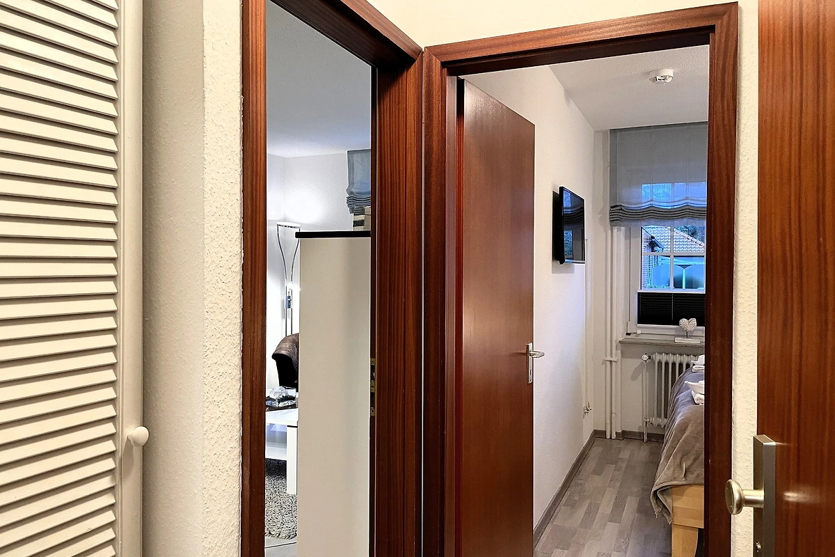 Das gepflegte Mehrfamilienhaus mit insgesamt 8 Wohneinheiten liegt strand-und zentrumsnah in der verkehrsberuhigten Friedrichstrasse. Die Wohnung Mühlenpark eignet sich daher auch hervorragend, wenn Sie ohne Auto anreisen möchten. Die Wyker Innenstadt mit den kleinen Läden, Cafés und Restaurants, die Strandpromenade und den idyllisch angelegten Mühlenpark erreichen Sie fussläufig - ebenso den Edeka-Markt, die Postfiliale und das Aqua Föhr. Im Untergeschoss des Hauses befindet sich ein Waschraum mit eigener Waschmaschine und Trockner zur kostenfreien Nutzung. Am Haus befindet sich zur gemeinsamen Nutzung ein Fahrradständer und der zur Wohnung gehörende PKW-Stellplatz. Geniessen Sie Föhr in vollen Zügen und in einer herrlichen Wohnung. Das Domizil Mühlenpark befindet sich im Erdgeschoss des Hauses und wurde geschmackvoll und mit viel Liebe eingerichtet und mit freundlichen Accessoires erstrahlt die hübsche Wohnung im charmanten Glanz. Von einem kleinen Flurbereich gelangen Sie in die weiteren Räume wie dem feinen Duschbad mit Handtuchheizung, dem freundlich wirkendem Schlafzimmer mit Fenster, Doppelbett (180x200cm) und geräumigem Kleiderschrank und dem Wohn-Essbereich mit integrierter Küche. Eine gemütliche Sitzecke mit hochwertigem Schlafsofa (1,35 x 2,00m), WLAN, einer kleinen Auswahl an Spielen und Flachbild-TV ist harmonisch abgestimmt auf den hellen Essbereich und die gut ausgestattete Küchenzeile, die mit Backofen, Ceranfeldherd, Mikrowelle, Geschirrspüler, Kaffeemaschine, Wasserkocher, Mixer, Eierkocher und vielem mehr zum Kochen einlädt. Der Balkon (Süd-Ost)ist teilüberdacht und in Richtung Mühlenpark gelegen. Wir wünschen viel Freude bei Ihrer Urlaubsplanung und können unser Domizil Mühlenpark bestens für einen Urlaub zu Zweit empfehlen!