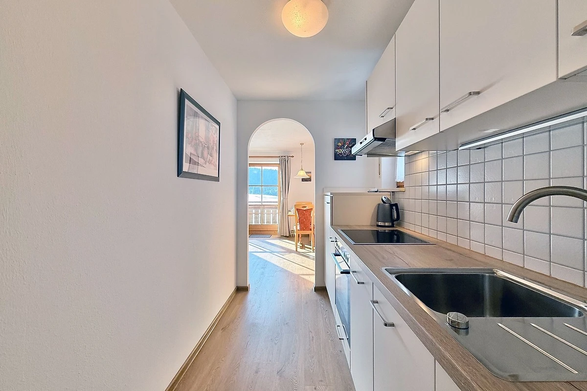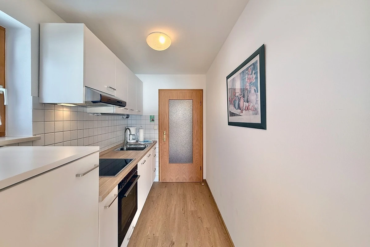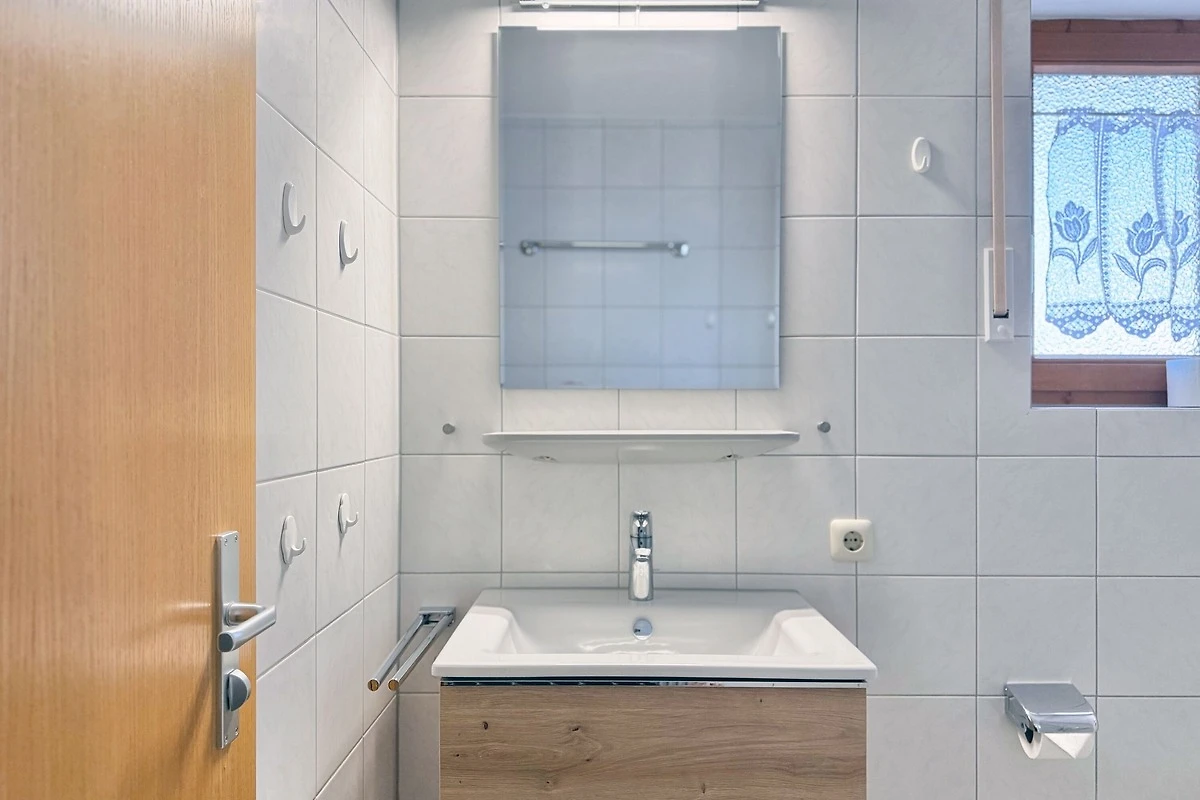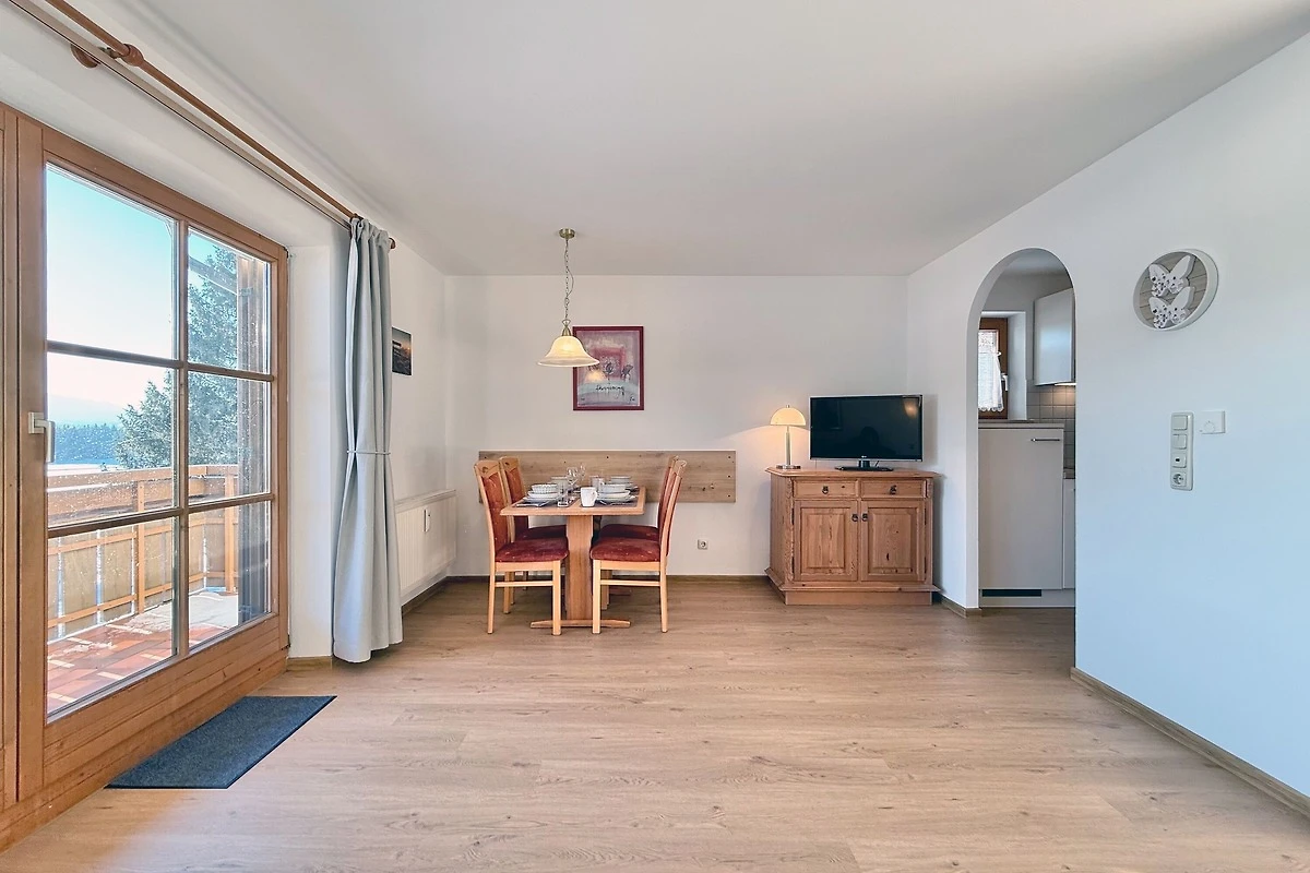 Die Ferienwohnung befindet sich im 1. Obergeschoss und verfügt über ein gemütliches Schlafzimmer, einen einladenden Wohn- und Essbereich sowie ein modernes Badezimmer mit neuer Dusche und neuem Waschbecken. Ein komfortables Doppelbett und ein Schlafsofa sorgen für angenehmen Schlafkomfort. Die neue Küche fügt sich harmonisch in das moderne Wohnkonzept ein und bietet alles für die tägliche Selbstversorgung. Vom Balkon aus geniessen Sie einen freien Blick in die umliegende Landschaft sowie die Allgäuer Alpen und lassen den Tag entspannt ausklingen.
