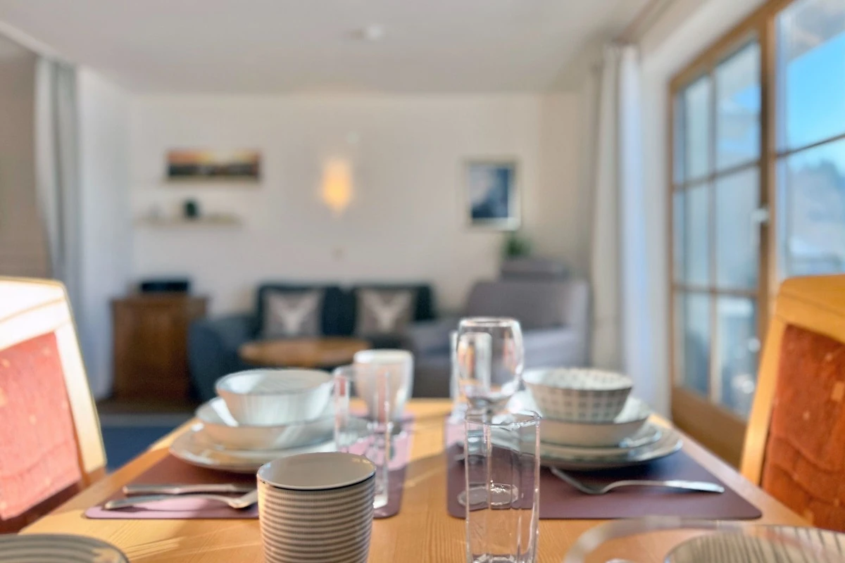 Zur Ausstattung gehören WLAN, ein TV-Flachbildschirm sowie die neu ausgestattete Küche mit Spülmaschine. Ein eigener Parkplatz steht direkt am Haus zur Verfügung. Fahrräder können sicher im abschliessbaren Fahrradraum untergebracht werden. Für gesellige Stunden steht eine Grillmöglichkeit bereit, auf Wunsch kann ein Brötchenservice genutzt werden. Die Wohnung ist eine Nichtraucherwohnung, Haustiere sind nicht erlaubt.