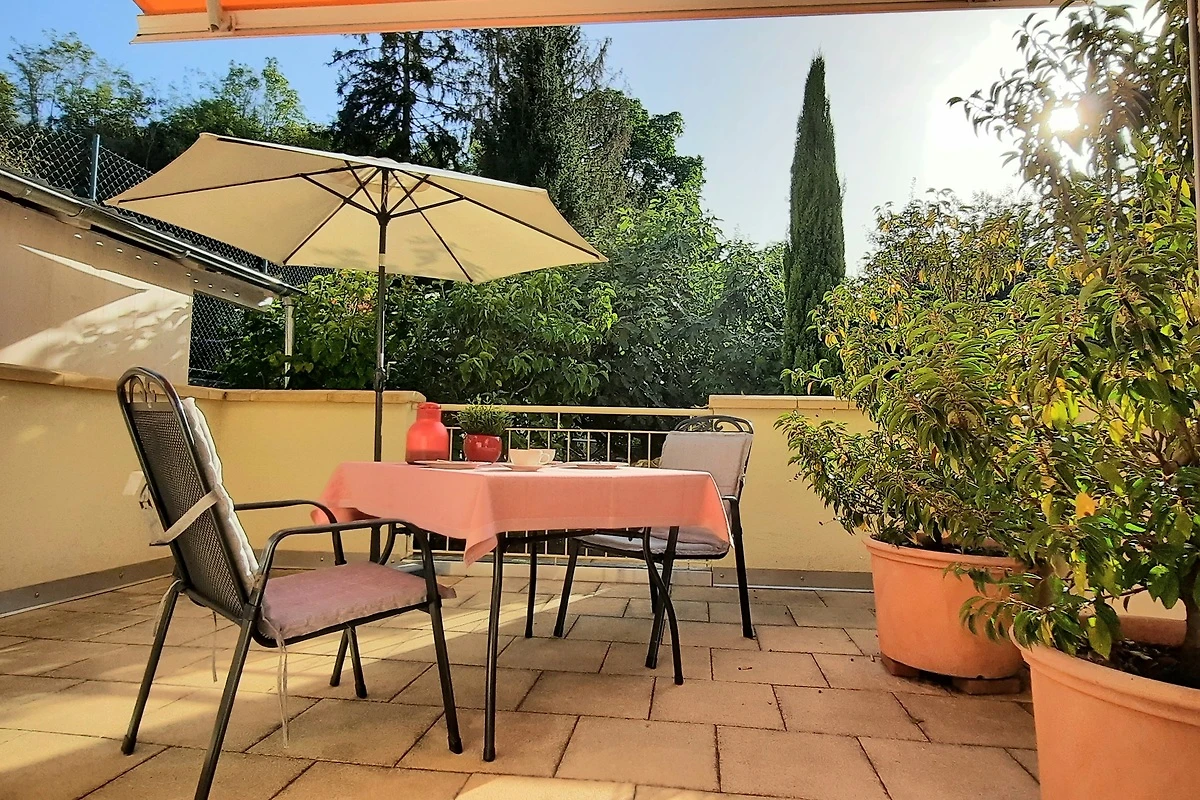 Die Ferienwohnung 3 im Haus Lavendel befindet sich im EG des Neubaus mit Ausrichtung nach Süden. Genießen Sie die besondere Lage, welche Ihnen diese Einraumwohnung bietet. Auf der Sonnenterrasse mit Blick in den mediterranen Garten werden Ihnen die Ruhe des Ortes schöne Stunden bescheren. Die Wohnung ist für Ihre Größe sehr gut ausgestattet. Für Fahrräder steht Ihnen unmittelbar nebenan ein abschließbarer Wasch-und Abstellraum zur Verfügung.
