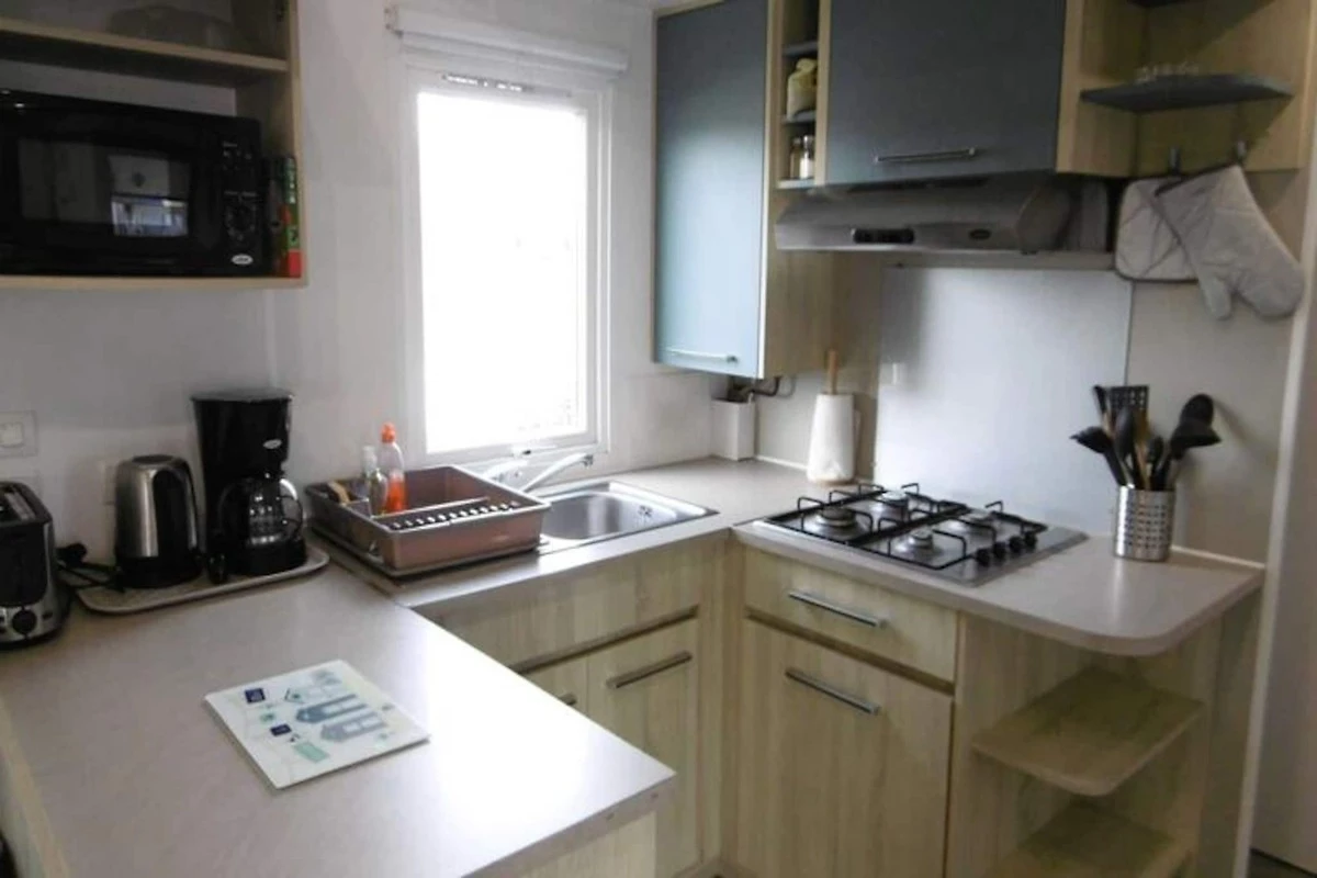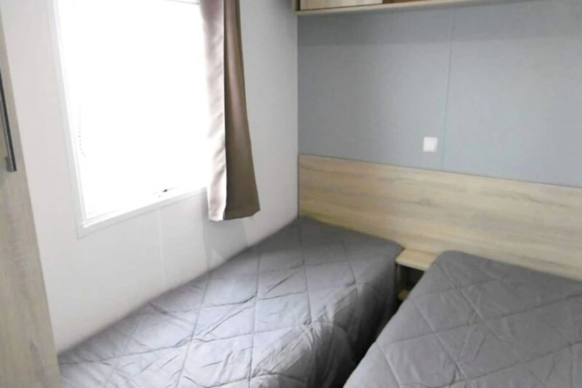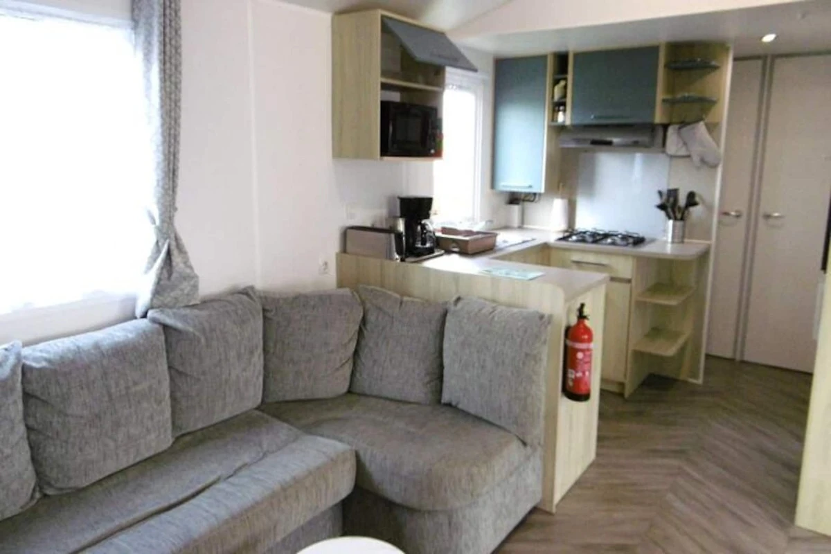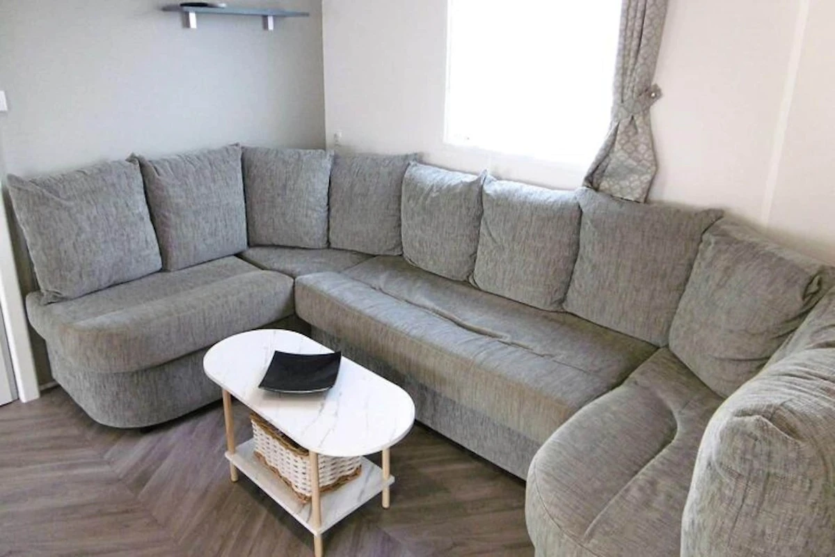 Das Mobilheim ist durchdacht gestaltet und bietet Platz für bis zu sechs Gäste. Das gemütliche Wohnzimmer mit einem bequemen Sofa führt zu einer voll ausgestatteten Küchenzeile, ideal für die Zubereitung frischer Meeresfrüchte aus der Region. Das Hauptschlafzimmer verfügt über ein Doppelbett und ein eigenes Badezimmer, während zwei weitere Schlafzimmer jeweils mit zwei Einzelbetten ausgestattet sind. Ein zweites Badezimmer und ein separates WC sorgen für Komfort für Familien oder Gruppen. Moderne Annehmlichkeiten wie Kühlschrank, Mikrowelle und Kaffeemaschine bieten Ihnen alle Annehmlichkeiten von zu Hause.