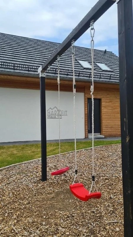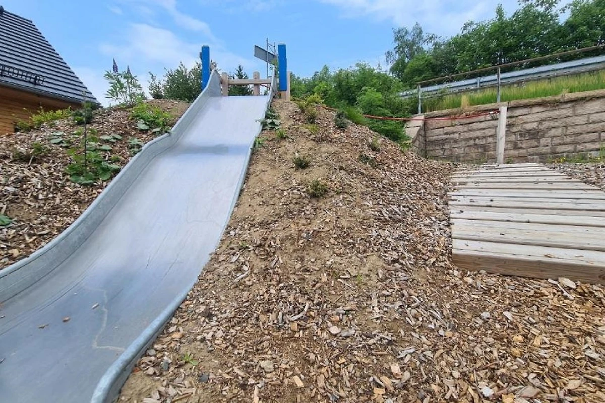 Eine Wellenrutsche und Schaukeln gehören ebenso zum Ferienhaus wie die einladende Sonnenterrasse mit seinen Lounge- Möbeln und dem Holzkohlegrill, der zu geselligen Barbecues einlädt. Mit etwas Glück können Sie von hier aus beheimatete Wildtiere entdecken und im Winter das bunte Treiben auf dem Rodelberg beobachten.