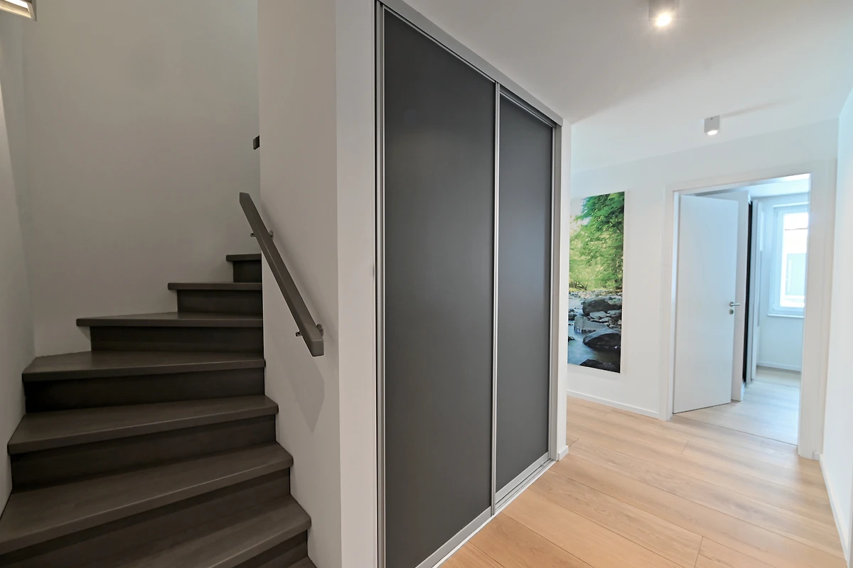 Die umweltfreundliche Wärmepumpe gewährleistet effiziente und angenehme Wärme über die Fußbodenheizung und versorgt das Haus mit Warmwasser.