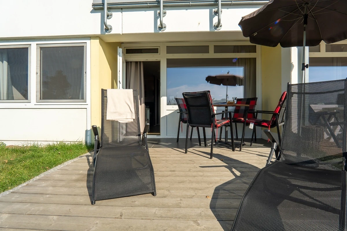 Der lichtdurchflutete Wohnschlafbereich ist mit gemütlichem Boxspringbett (ca. 180*200cm), einer grossen Sofaecke und Flatscreen-TV ausgestattet. Im angrenzenden Essbereich finden bequem vier Personen Platz. Der offene Küchenbereich ist, für den Urlaubsbedarf, voll ausgestattet. Das zweite Schlafzimmer ist mit zwei komfortablen Einzelbetten (ca. 90*200cm) und eigenem TV eingerichtet. Beide Schlafbereich können verdunkelt werden.