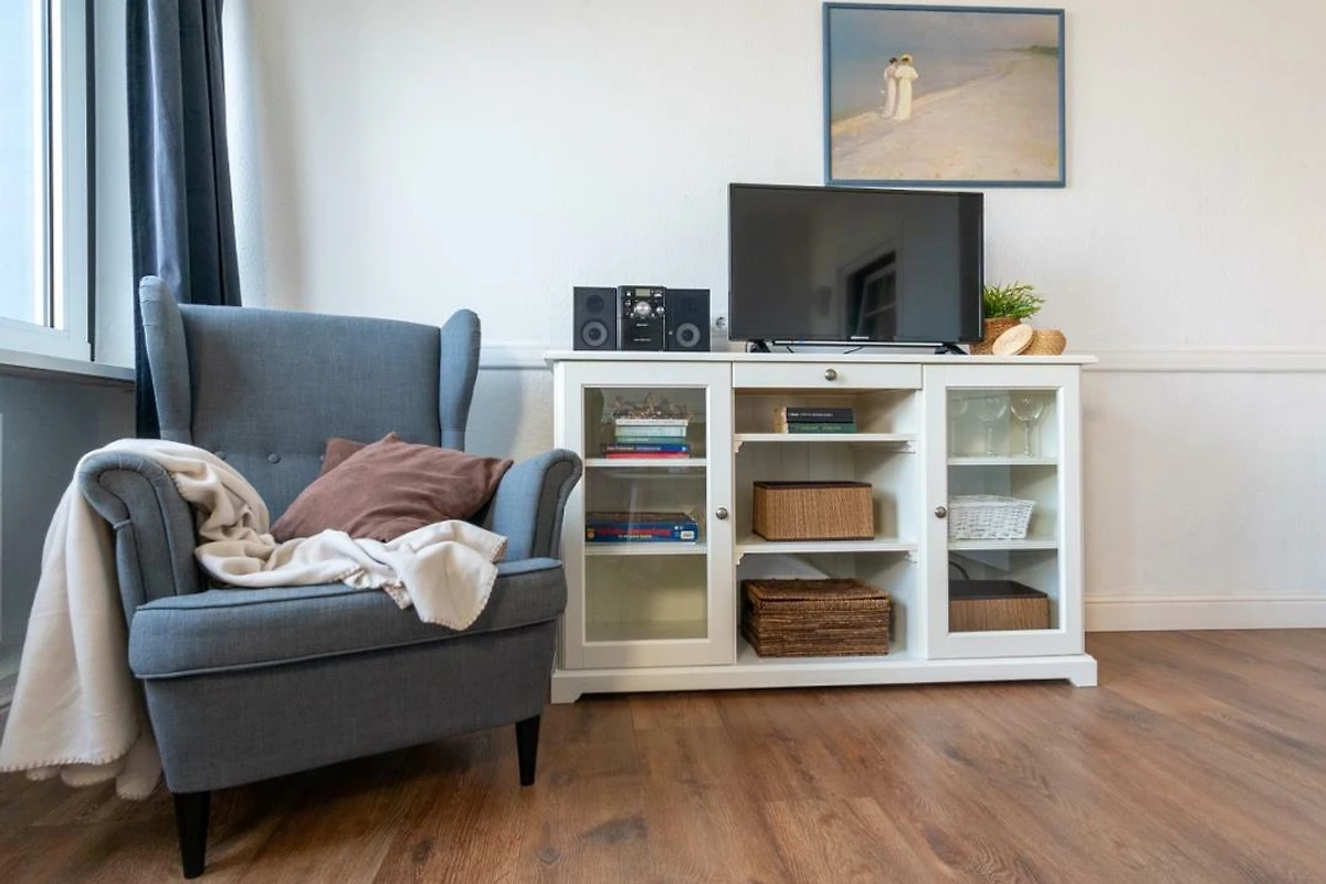 Urlauben Sie auf grosszügigen 37 m² (1. Etage) im "Strandhuus" auf dem Steinwarder - nur wenige Meter vom Badestrand entfernt. Die zuletzt 2021 modernisierte Ferienwohnung verfügt über einen grossen Wohnschlafbereich mit einer gemütlichen Sofaecke (Schlafsofa*) und Flatscreen-TV. Im angrenzenden Essbereich finden bequem vier Personen Platz zum Schlemmen. Der offene Küchenbereich ist, für den Urlaubsbedarf, voll ausgestattet. Eine Kaffeemaschine gehört ebenso dazu, wie ein Wasserkocher und ein Toaster. Geschirr und Besteck sind ausreichend vorhanden. Das Alkovenschlafzimmer ist mit zwei komfortablen Einzelbetten eingerichtet. Das Badezimmer wurde ebenfalls modernisiert und verfügt über eine Dusche mit Glastrennwand.