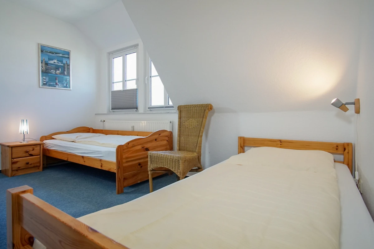 Im Obergeschoss befinden sich die beiden Schlafzimmer. Der Masterbedroom verfügt über ein Doppelbett einen eigenen Flatscreen-TV. Das zweite Schlafzimmer ist mit zwei Einzelbetten ausgestattet.