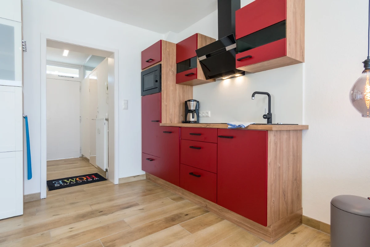 Wir waren zum zweiten Mal in der kleinen Wohnung, Arielle, 11. Was die Wohnung wirklich Charmant macht, ist die Lage. Zum Einen liegt sie am älteren Teil der Südstrand-Bebauung mit niedrigen Häusern, zentral zu den Restaurants und dem schönen, gepflegten Strand, zum Anderen ist der schmale Balkon das eigentliche Highlight. Man sitzt erhöht (1. Etage), relativ windgeschützt mit Blick auf die Strandpromenade, die schmale Düne und den Ostseestrand. Wir haben dies bei jedem Frühstück und Abendessen genossen. Die Wohnung selber ist schön, aber winzig. Doppelbett 140 cm in winzigem Schlafzimmer, die Doppelcouch lässt sich leicht ausklappen, knarrt in der Nacht aber sehr. Man benötigt für beide Schlafplätze ein großes Bettuch, da durchgehende Matratze. Die Ausstattung ist ausreichend aber, aus Platzgründen, nicht üppig. Man sollte alles mitbrtingen: Pfeffer, Salz, Zucker, Kaffeefilter, Toilettenpapier.... Platz für die eigenen Sachen ist sehr begrenzt. Mit zwei Personen kommt man aber wunderbar klar. Wir haben den Urlaub am Meer in einem ruhigen gepflegten Urlaubsort wieder sehr genossen.