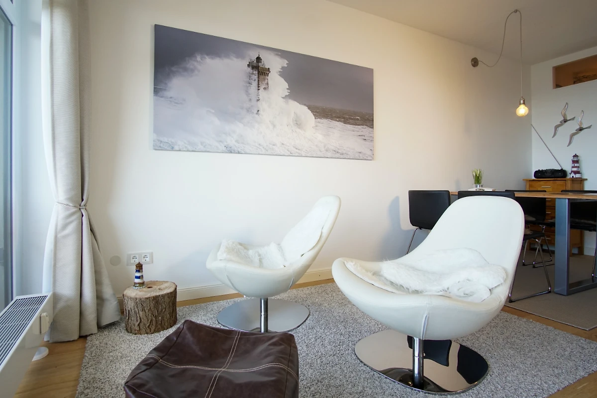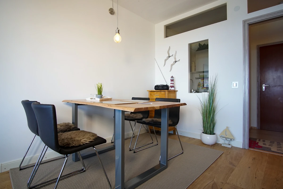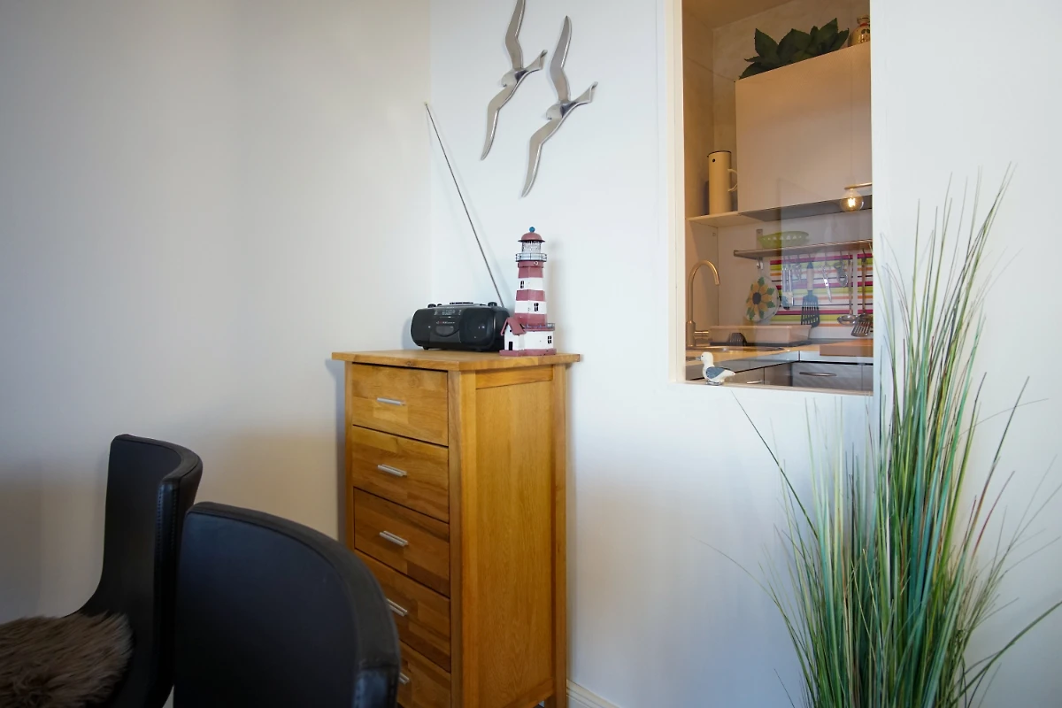 Diese sonnige Studiowohnung in der dritten Etage bietet Ihnen ein gemütliches Zuhause in idealer Lage – perfekt für alle, die das Meer lieben und Ruhe suchen. Der grosszügige, lichtdurchflutete Wohnbereich lädt zum Verweilen ein und begeistert mit einer offenen, gut integrierten Küchenzeile. Vom Wohnzimmer aus gelangen Sie direkt auf den Balkon, der nicht nur den Raum mit natürlichem Licht füllt, sondern auch zu entspannten Stunden an der frischen Luft einlädt.
