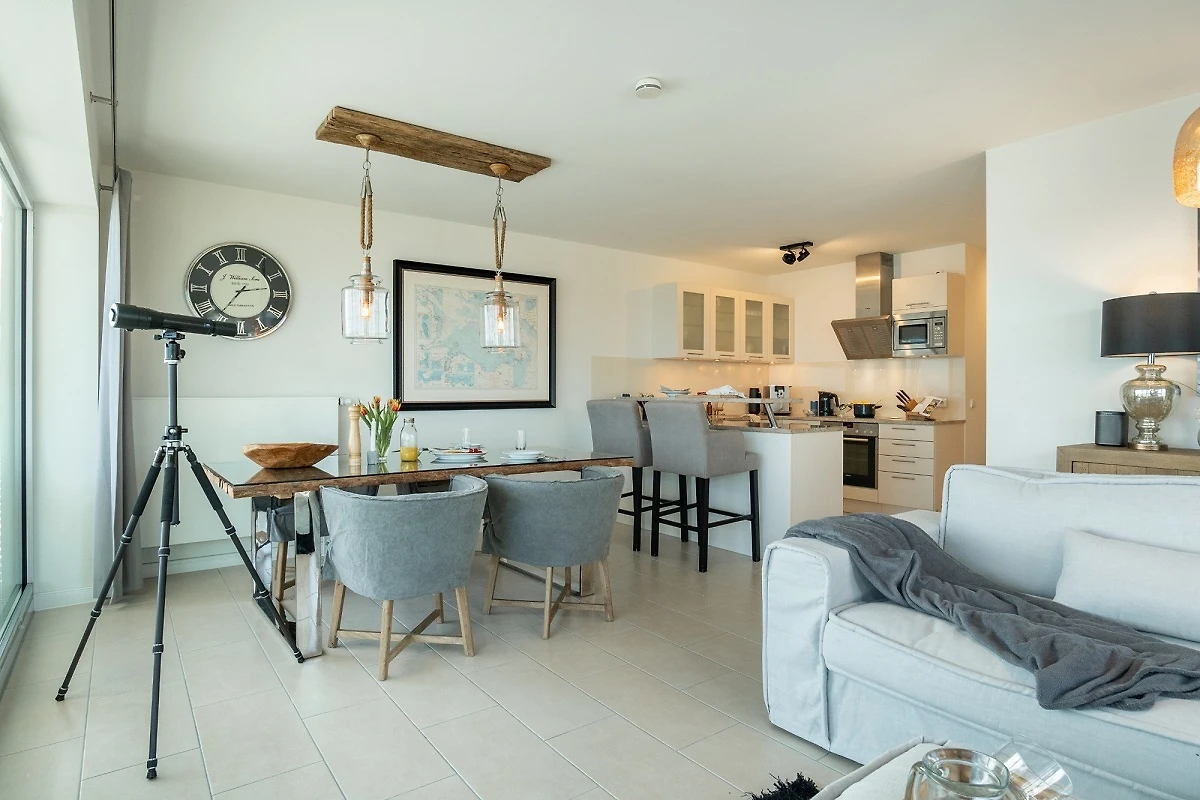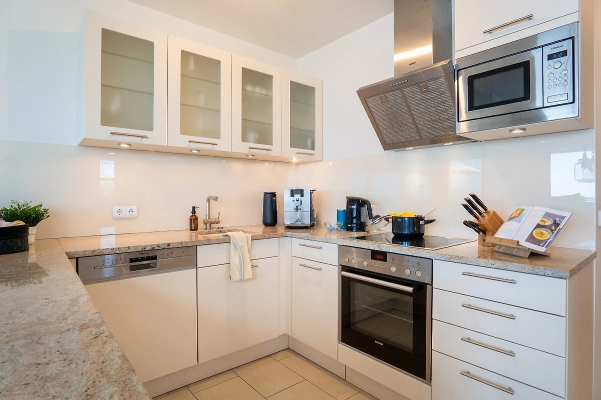 Eine absolut stilvoll und super ausgestattete Wohnung mit einem traumhaften Blick auf die Ostsee. Die Küche ist erstklassig ausgestattet inkl. Jura Kaffeevollautomat (einzig eine Auflaufform hat uns gefehlt, die wir aber gerne "gesponsert" und vor Ort gelassen haben). Gemütliche Couch, bequeme Betten....was will man mehr. Wir kommen gerne wieder!