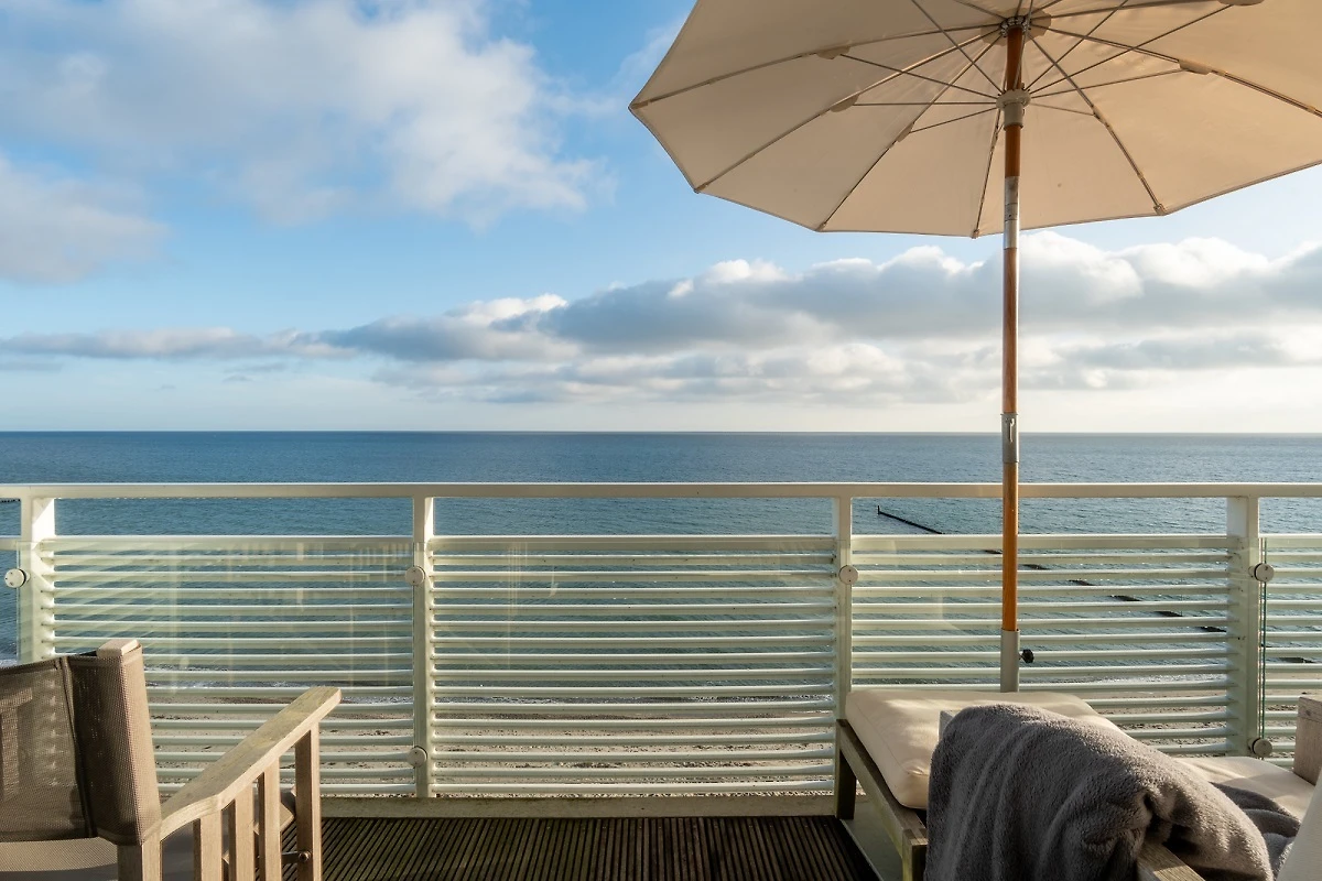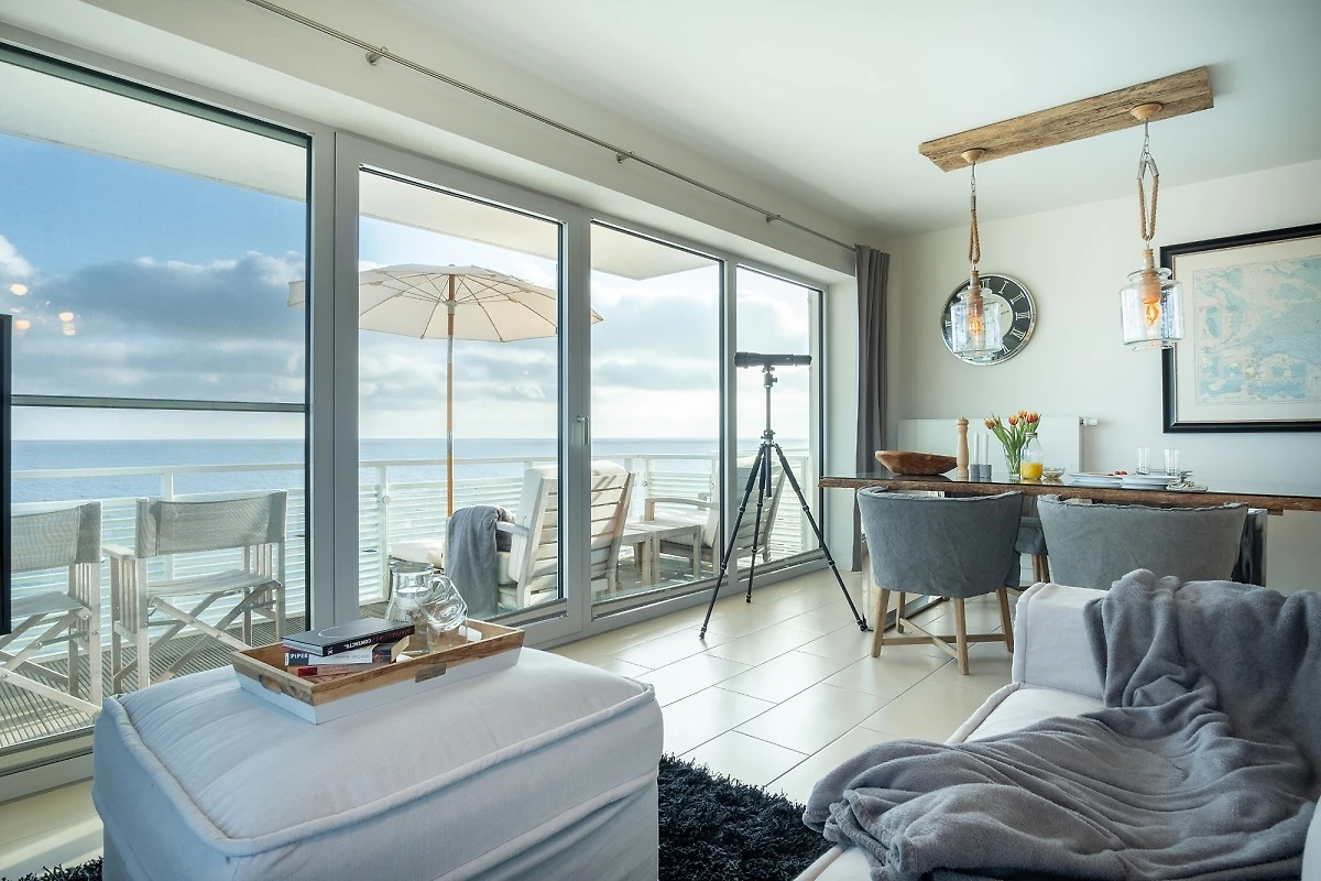 Urlauben Sie auf grosszügigen 70 m² (3. Etage) mit Balkon und tollem Ausblick zum Meer. Das grosse, lichtdurchflutete Wohnzimmer ist mit einer gemütlichen Sofaecke, einem TV und einer Playstation 4 ausgestattet. Vom Wohnzimmer aus gelangen Sie auf den Balkon mit traumhaften Blick zum Strand und zur Ostsee - der Stand direkt vor der Tür.