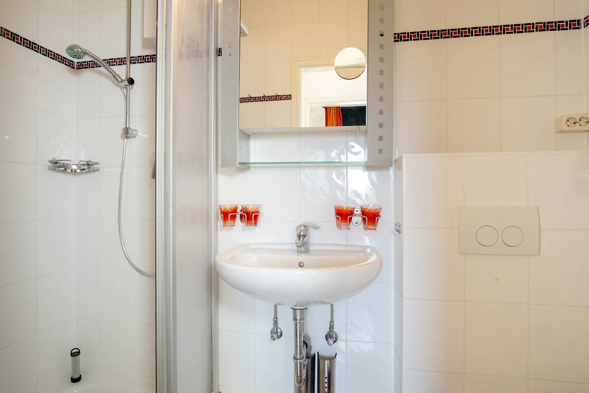 Die gemütliche 54m²-Wohnung befindet sich in der vierten Etage verfügt über einen hellen Wohnbereich mit einem gemütlichen Sofa, Flatscreen-TV und einer Essecke für vier Personen. Vom Wohnzimmer aus gelangen Sie auf den Westalkon mit tollem Ausblick seitlich zum Meer. Der offene Küchenbereich ist, für den Urlaubsbedarf, voll ausgestattet. Eine Kaffeemaschine gehört ebenso dazu, wie der Wasserkocher und ein Toaster. Geschirr und Besteck sind ausreichend vorhanden. Das Appartement verfügt über zwei separates Schlafzimmer: im Elternschlafzimmer warten zwei bequeme Einzelbetten auf Sie. Das Kinderzimmer hält ein Schlafsofa vor.