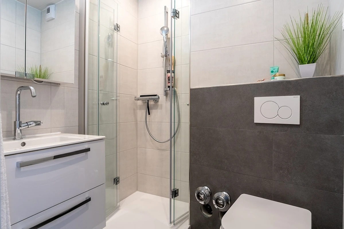 Unsere moderne Studio-Wohnung in der 8. Etage lädt zum Ankommen und Wohlfühlen ein: Ein lichtdurchfluteter Wohnbereich mit gemütlicher Essecke, grosszügiger Küchenzeile und Zugang zum sonnigen Westbalkon bietet alles, was das Urlauberherz begehrt. Der separate Schlafbereich ist mit einem komfortablen Doppelbett (ca. 180 x 200 cm) ausgestattet, und das moderne Duschbad rundet das Wohlfühlambiente ab.