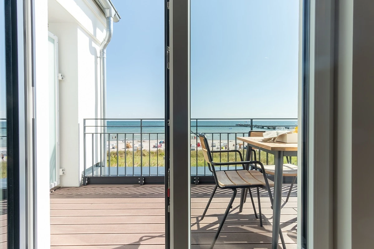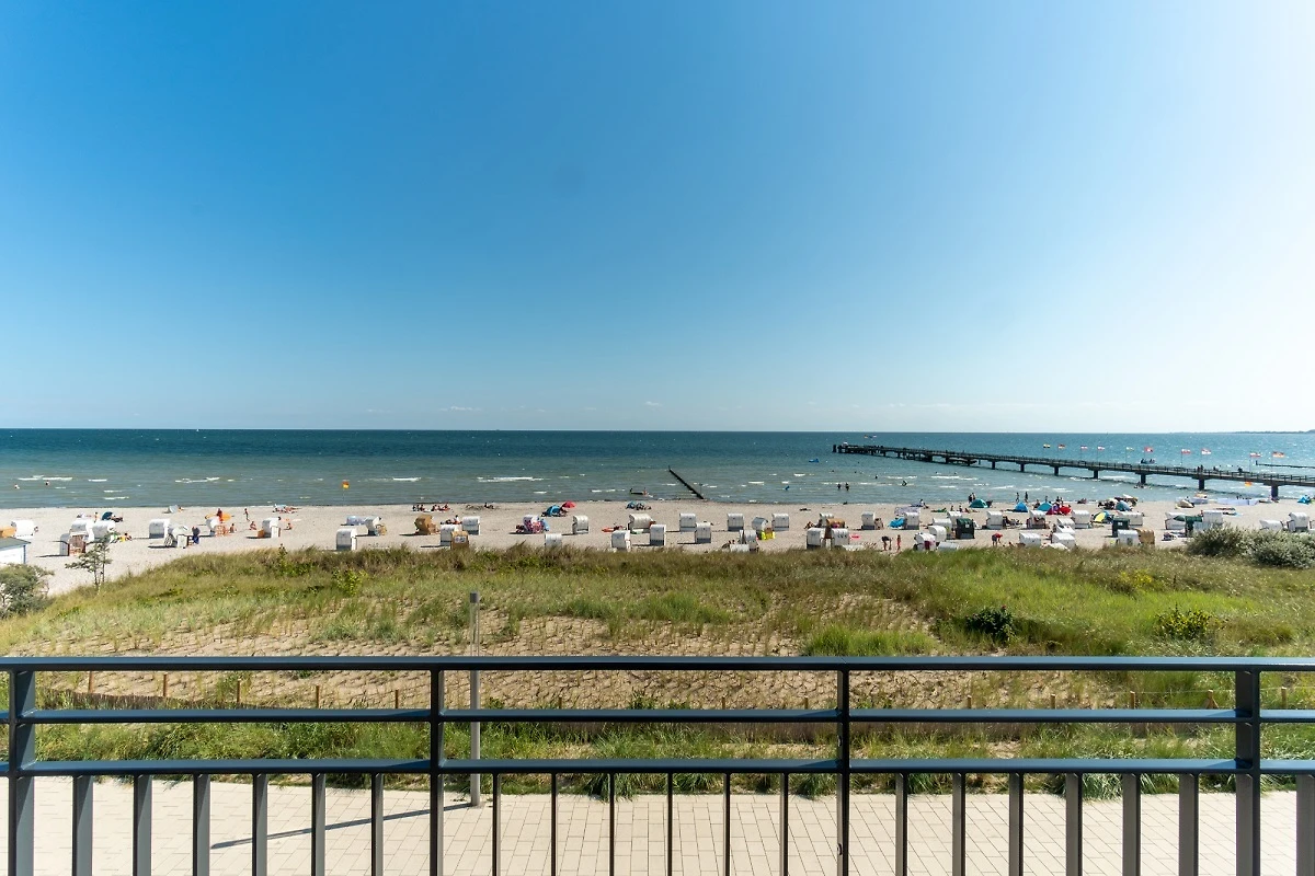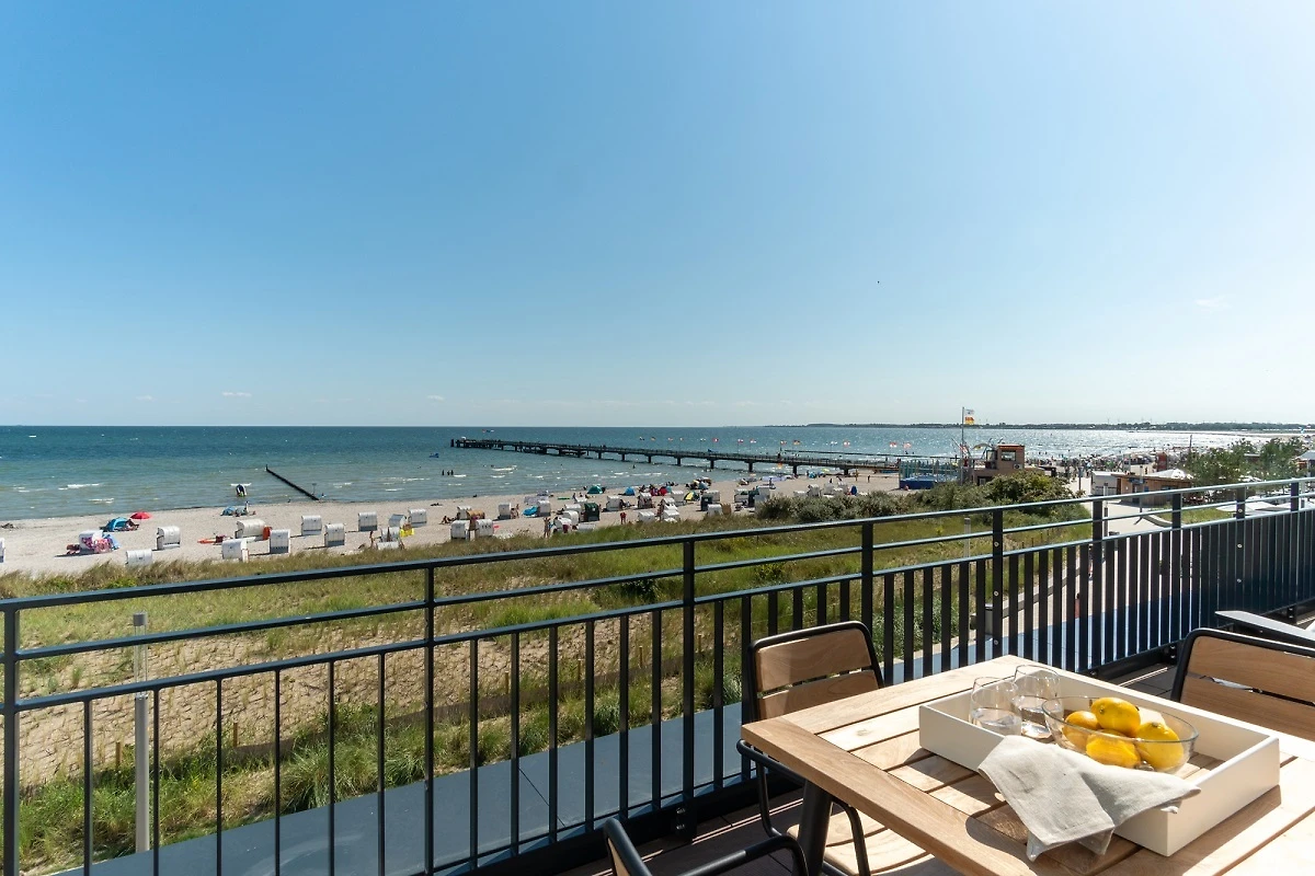 Die grosszügige Meerblickwohnung „Meereszauber" mit 59,6 m² (2. Etage) inkl. 14 m² Süd-Balkon verspricht luxuriösen und entspannten Urlaub direkt am feinsandigen Badestrand von Grossenbrode.