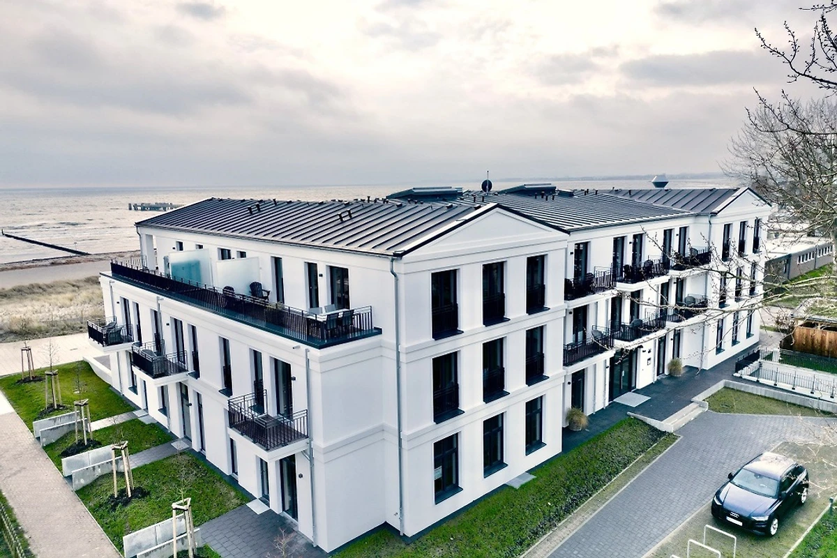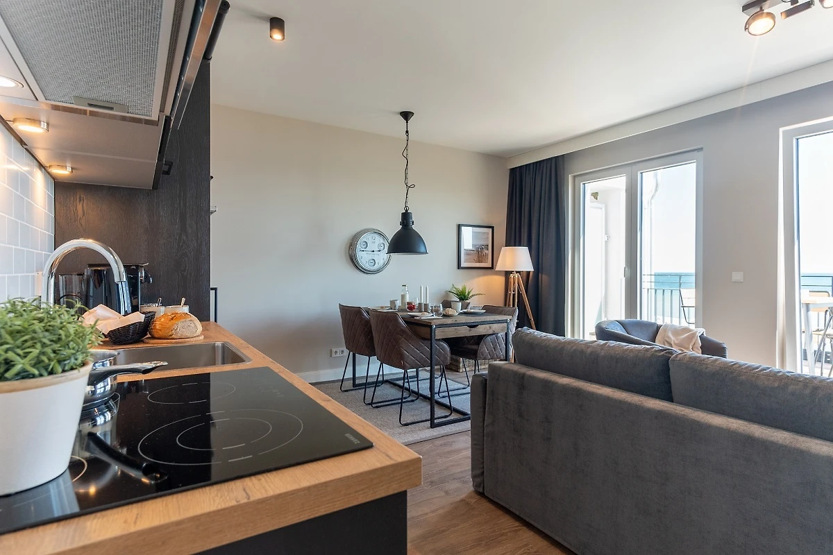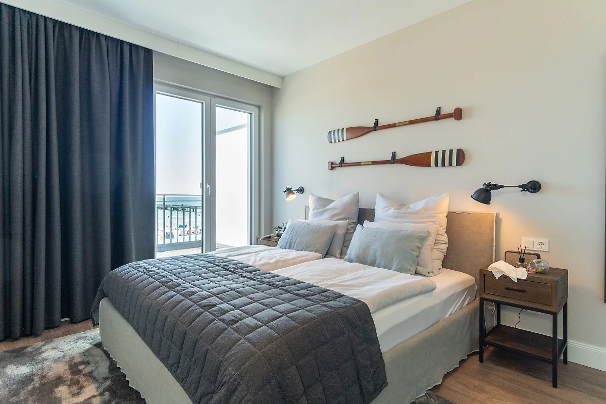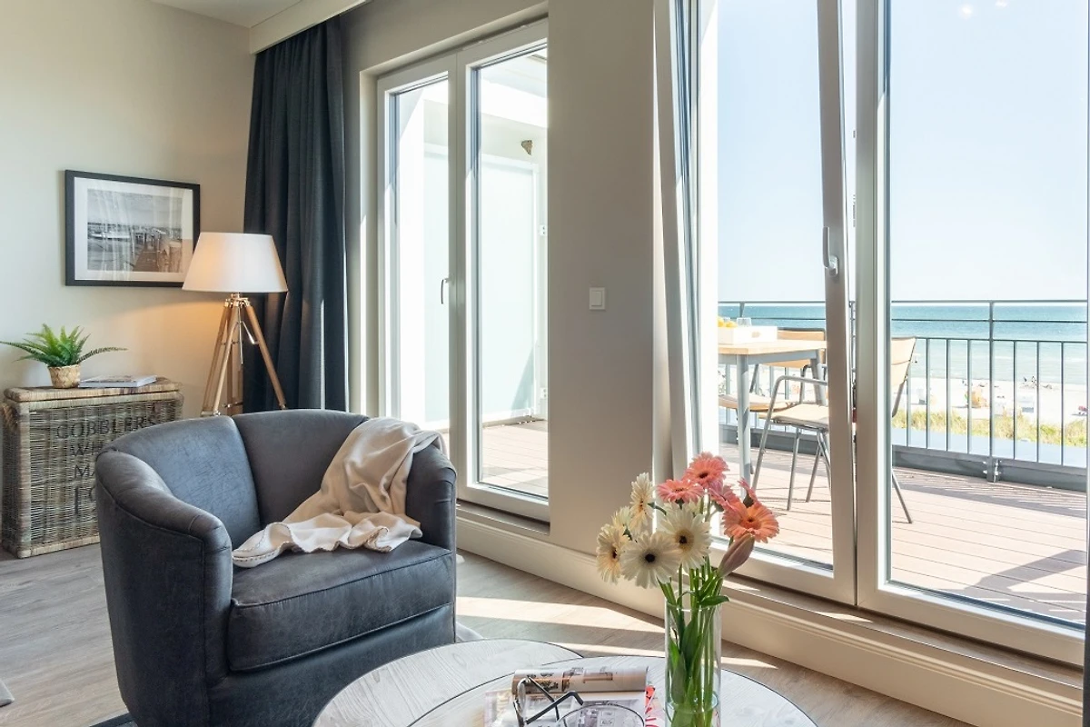 Die grosszügige Meerblickwohnung „Meereszauber" mit 59,6 m² (2. Etage) inkl. 14 m² Süd-Balkon verspricht luxuriösen und entspannten Urlaub direkt am feinsandigen Badestrand von Grossenbrode.