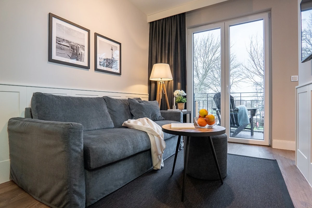 Bodentiefe Fenster im Wohn- und Schlafbereich, beide mit direktem Balkonzugang
