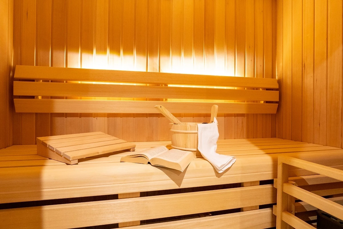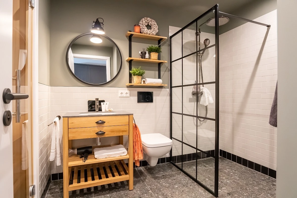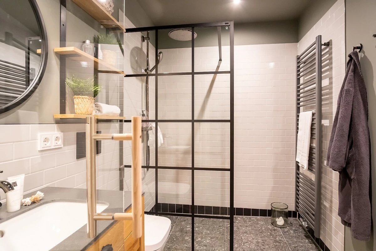 Grosses Badezimmer mit Regendusche und eigener Sauna