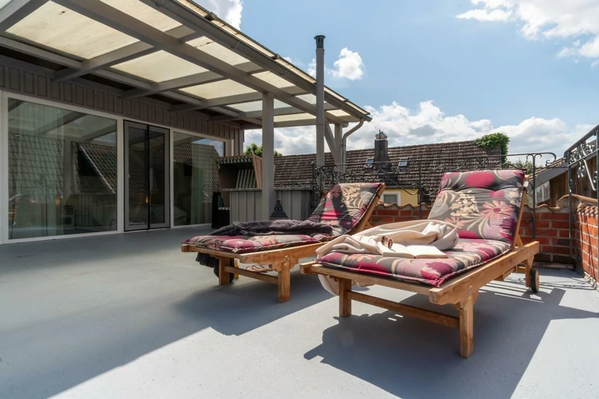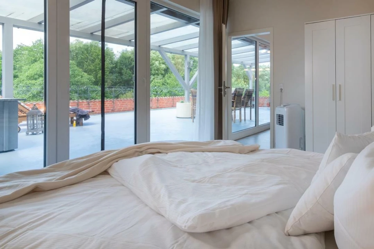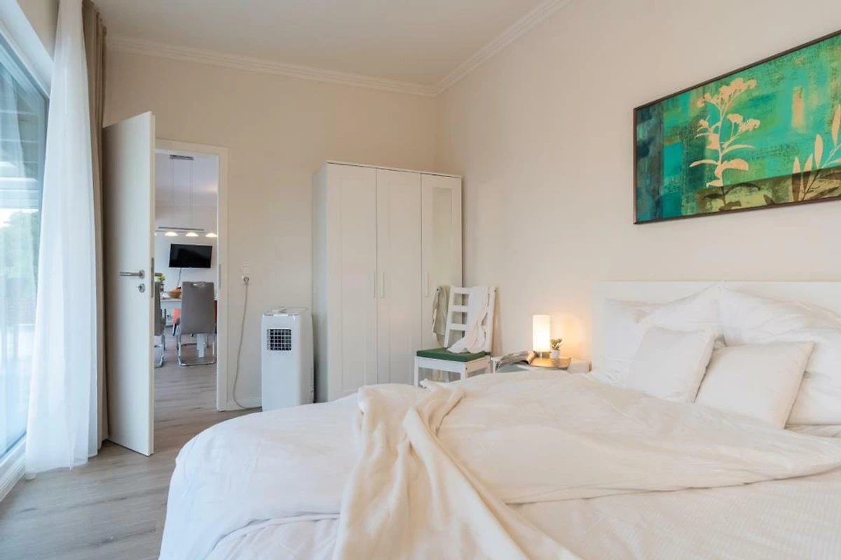 Beide Schlafzimmer sind mit einem komfortablen Doppelbett eingerichtet - der Masterbedroom verfügt zudem über einen TV und eigenen Zugang zur ca. 55 m² grossen Dachterrasse, die zur Hälfte überdacht ist und einen tollen Blick zum Bischofsee bietet.