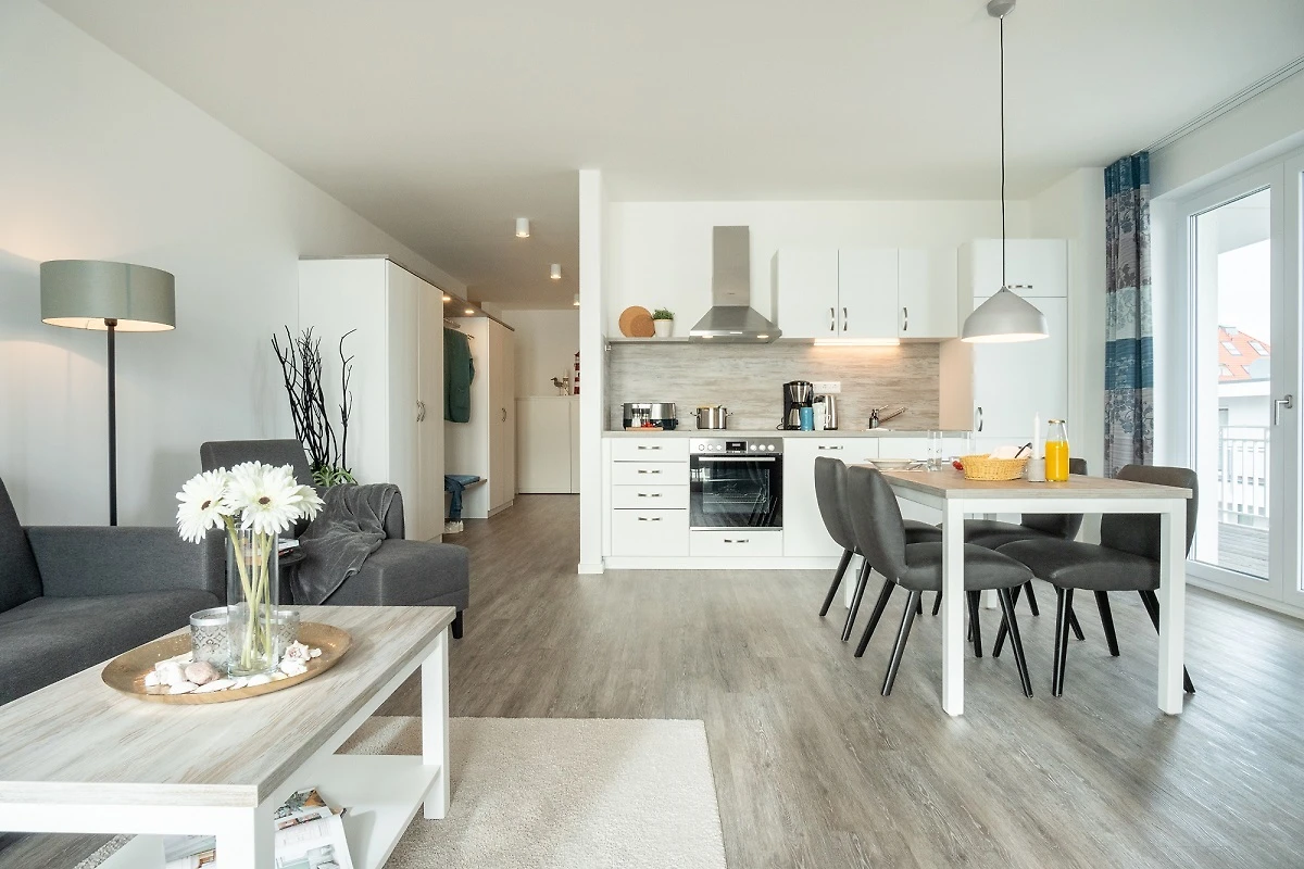 Willkommen in der Meerblickvilla - näher ans Meer geht es kaum. Die Wohnung 41 befindet sich in der dritten Etage und verfügt über zwei Zimmer auf ca. 68 m² - aufgeteilt auf ein Schlafzimmer, ein Duschbad und den lichtdurchfluteten Wohn- und Essbereich mit angrenzender Küchenzeile. Das besondere Highlight sind die zwei überdachten Balkone (Nord-Ost-Lage & Süd-Lage) mit traumhaften Ausblick zum Meer.