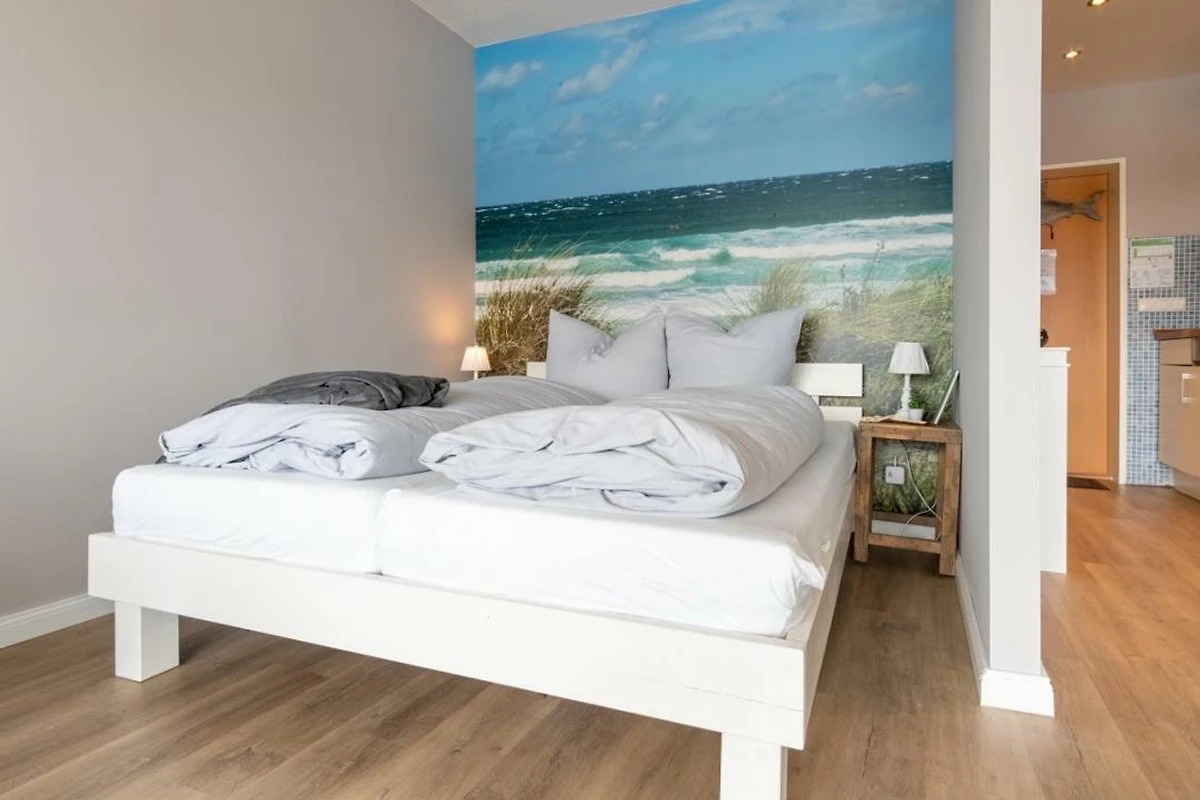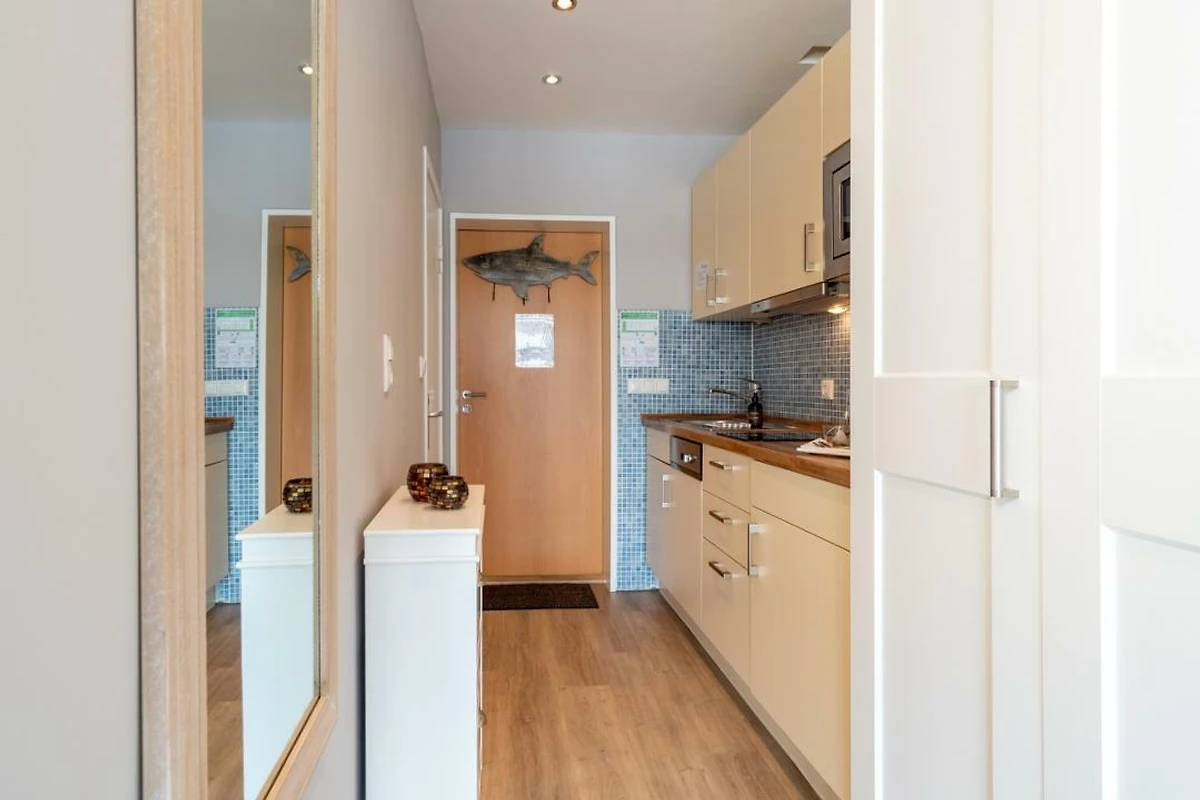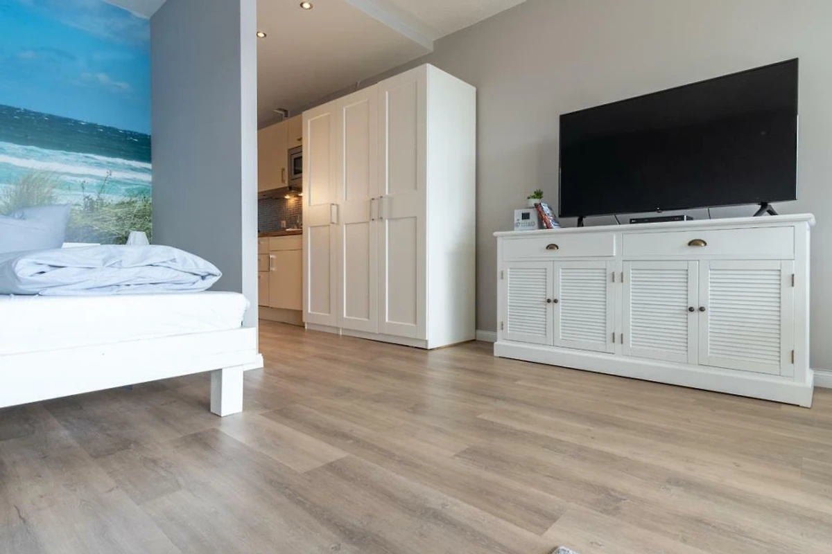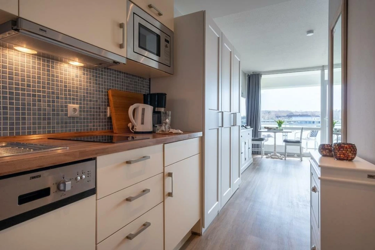 Urlauben Sie auf grosszügigen 31m² (2. Etage) im "Strandhuus" auf dem Steinwarder - nur wenige Meter vom Badestrand entfernt. Die zuletzt 2021 modernisierte Ferienwohnung verfügt über einen grossen Wohnschlafbereich mit einem gemütlichen Doppelbett, einer Sofaecke und einen Flatscreen-TV. Im angrenzenden Essbereich finden bequem zwei Personen Platz zum Schlemmen. Vom Wohnbereich aus gelanden Sie auf den Südbalkon mit Blick zum Binnensee. Der offene Küchenbereich ist, für den Urlaubsbedarf, voll ausgestattet. Eine Kaffeemaschine gehört ebenso dazu, wie ein Wasserkocher, Backofen, Geschirrspüler und ein Toaster. Geschirr und Besteck sind ausreichend vorhanden. Das Badezimmer wurde ebenfalls modernisiert und verfügt über eine Dusche mit Glastrennwand.