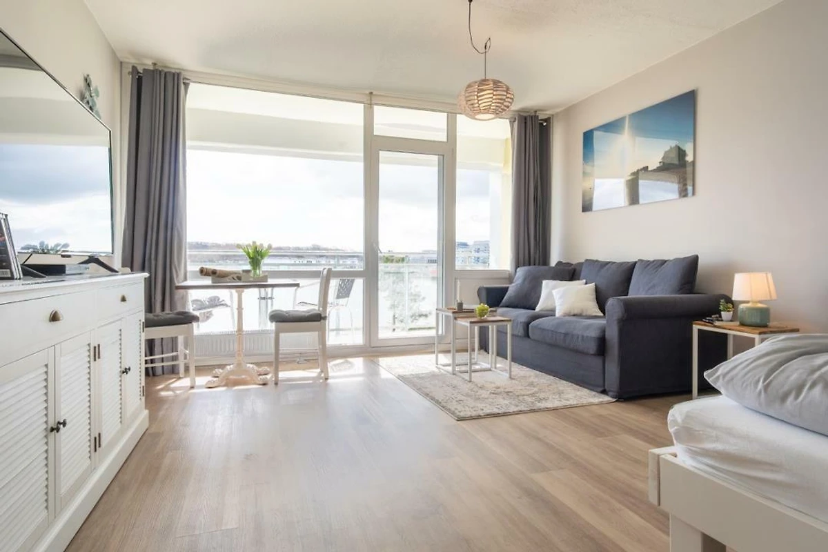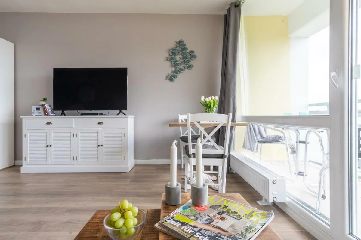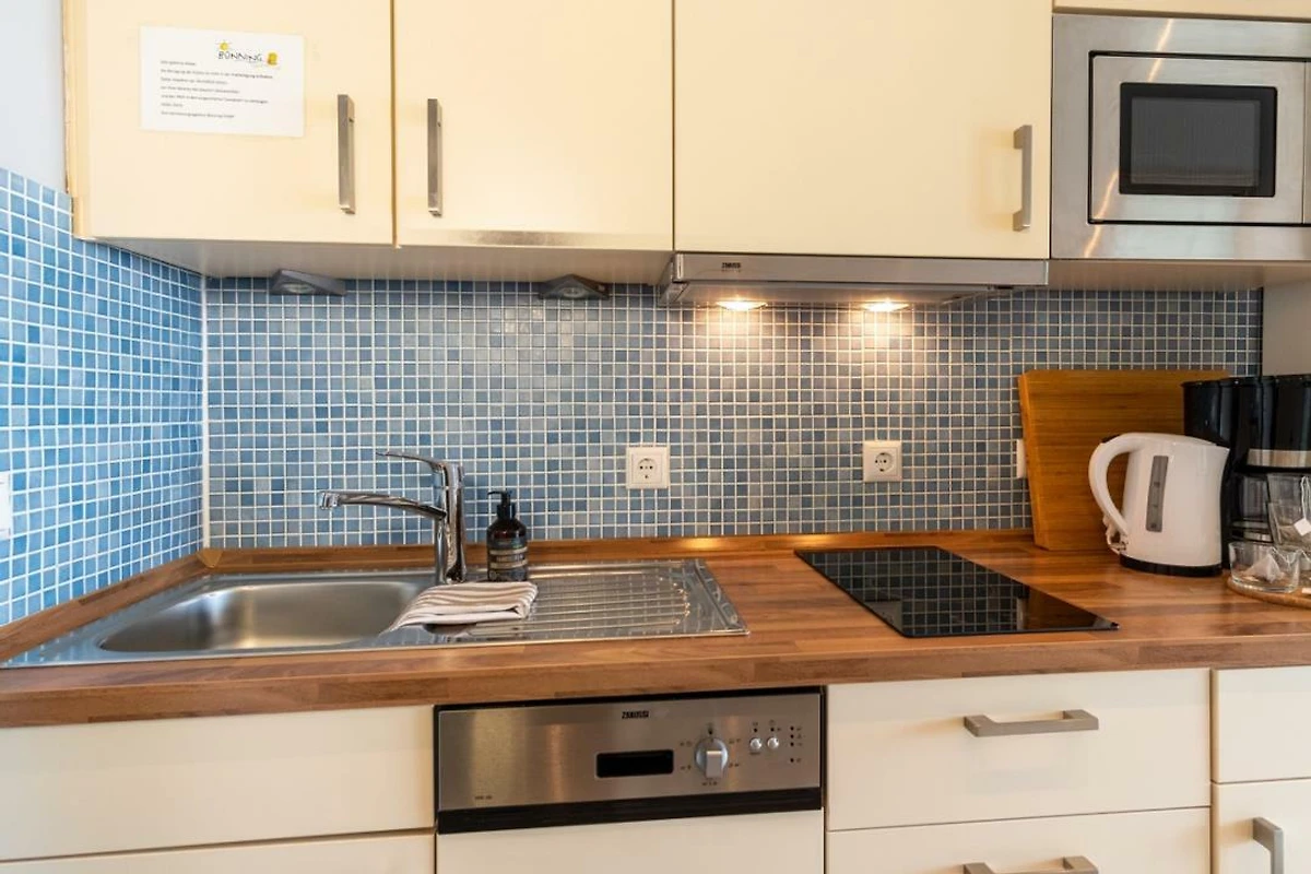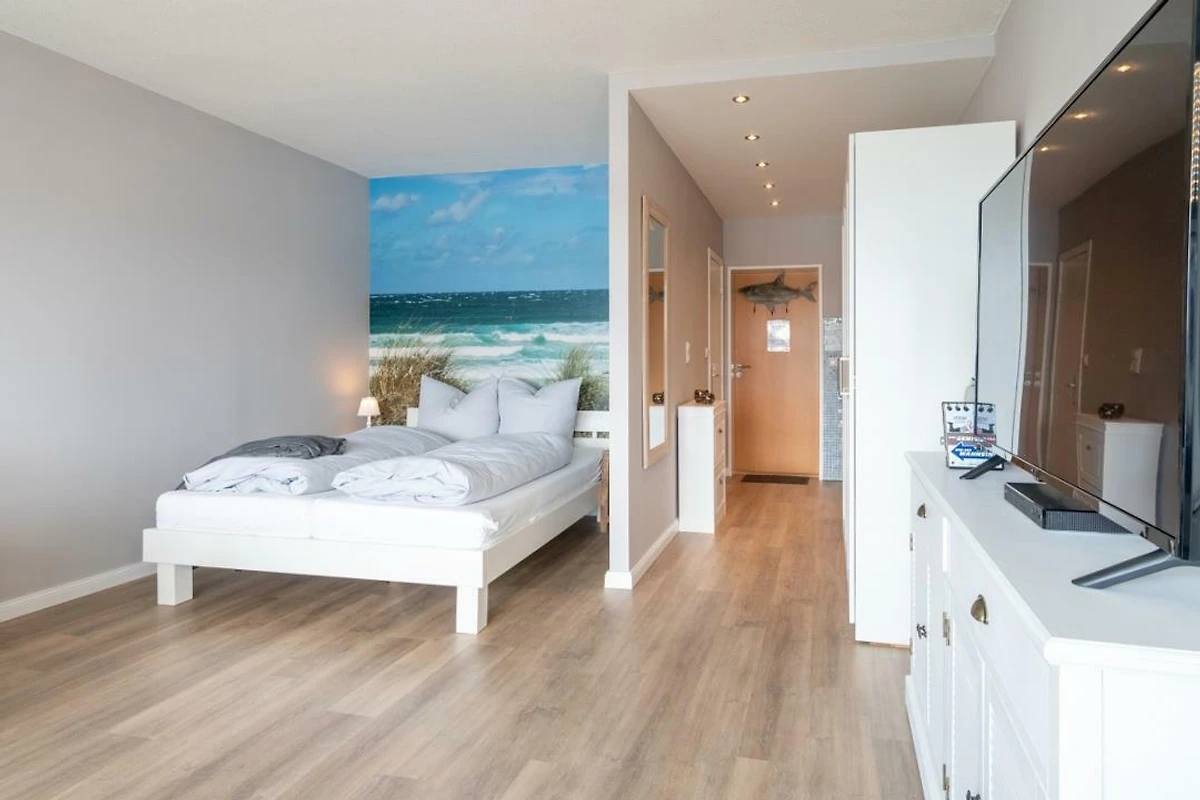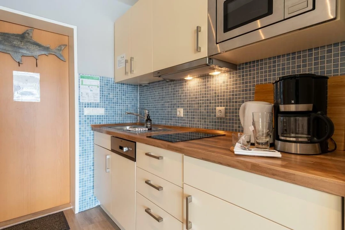 Urlauben Sie auf grosszügigen 31m² (2. Etage) im "Strandhuus" auf dem Steinwarder - nur wenige Meter vom Badestrand entfernt. Die zuletzt 2021 modernisierte Ferienwohnung verfügt über einen grossen Wohnschlafbereich mit einem gemütlichen Doppelbett, einer Sofaecke und einen Flatscreen-TV. Im angrenzenden Essbereich finden bequem zwei Personen Platz zum Schlemmen. Vom Wohnbereich aus gelanden Sie auf den Südbalkon mit Blick zum Binnensee. Der offene Küchenbereich ist, für den Urlaubsbedarf, voll ausgestattet. Eine Kaffeemaschine gehört ebenso dazu, wie ein Wasserkocher, Backofen, Geschirrspüler und ein Toaster. Geschirr und Besteck sind ausreichend vorhanden. Das Badezimmer wurde ebenfalls modernisiert und verfügt über eine Dusche mit Glastrennwand.