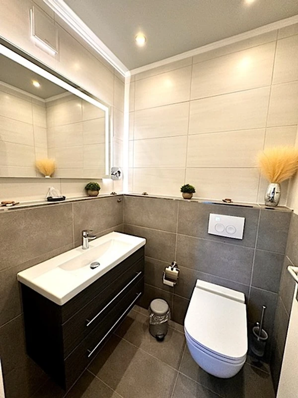 Dusche und WC wurden praktischer Weise räumlich voneinander getrennt, so dass es nicht zum morgendlichen Gedrängel im Bad führt