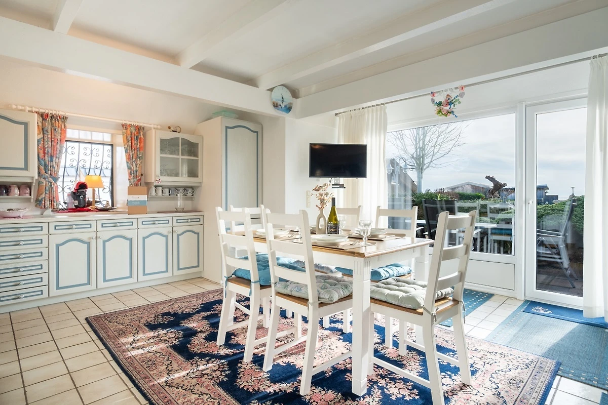 Das "Happy Haus" bietet auf zwei Etagen reichlich Platz für einen gemütlichen Aufenthalt in bester Lage an der Küste. Im Erdgeschoss befinden sich ein helles Wohn- und Esszimmer mit Zugang zur Terrasse, eine kleine Einbaucküche, ein Duschbad, sowie ein Schlafzimmer mit Doppelbett. Von dort aus gelangt man in den ausgebauten Dachboden mit zwei weiteren Schlafgelegenheiten. Das dritte Schlafzimmer und ein Badezimmer mit Badewanne befinden sich in der ersten Etage.