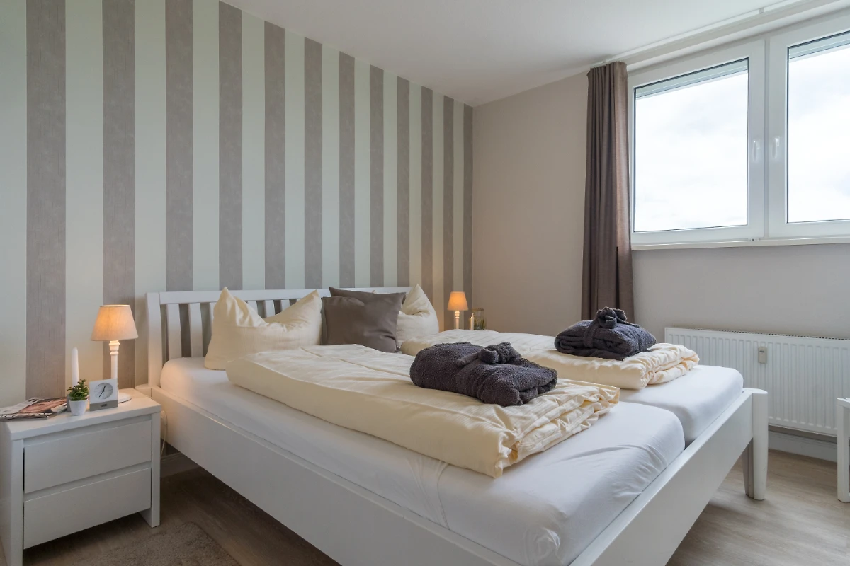 Die Wohnung mit W-Lan in der 8. Etage, verwöhnt Sie neben einem herrlichen Blick auf die Ostsee, mit vollständig neuem Interieur und allem Komfort, der Ihren Urlaub zu den schönsten Tagen des Jahres werden lässt. Das Wohn- und Esszimmer ist mit einem Flachbildschirm-TV und Blu-ray-Player, einer Bluetooth-Stereoanlage mit CD- und Smartphoneanschluss sowie diversen Filmen und Gesellschaftsspielen für jung und alt ausgestattet. Die offene Einbauküche verfügt über einen Kühlschrank mit 3-Sterne-Tiefkühlfach, Mikrowelle, 4-Platten-Ceranfeld inklusive Backofen und Dunstabzugshaube, Geschirrspüler, Kaffeemaschine, Wasser- und Eierkocher, Toaster und einer vollwertigen Küchenausstattung für 6 Personen. Im separaten Schlafzimmer, mit Ausblick auf Landschaft und Naturschutzgebiet (Aussenjalousie vorhanden), finden Sie ein Doppelbett (180x200) und einem zweiten Flachbildschirm-TV sowie eine grosszügige Kommode mit Auszügen vor. Im Kinderzimmer steht ein himmelblaues Etagenbett (90x190). Im Badezimmer wurde eine bodentiefe Dusche mit einer Vollglas-Duschkabine verbaut. Ein Ober- und Unterschrank bieten ausreichend Stauraum und zusätzlich liegt dort ein Föhn für Sie bereit. Vom möblierten Balkon der Wohnung geniessen Sie im Sommer einen traumhaften Sonnenuntergang.