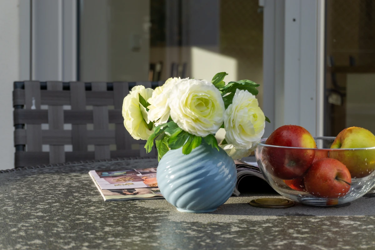 Die ruhige und entspannte Lage des Ferienhauses haben uns gut gefallen. Zu Fuß in 10 Min. in der Altstadt. Das großzügige Haus haben wir mit 3 Erwachsenen Erwachsenen bewohnt . Bis auf ein paar Kleinigkeiten hat es uns sehr gut gefallen. Leider war es nicht möglich bei sonnigem Wetter auf der Terrasse zu frühstücken, da ein Sonnenschirm oder eine Markise fehlten. Ferner waren die Balkon Stuhlauflagen zu klein. Die Liegestühle verdreckt. Gewünscht hätten wir uns im oberen Badezimmer einen Duschvorhang, sowie mehr Wasserdruck zum Duschen. Die Küche war sehr gut ausgestattet, bis auf Kaffeebecher. Es gab eine Sammelsurium von nur 5 Bechern die auch teilweise angeschlagen waren, schade. Weshalb wir trotz Geschirrspülmaschine ständig abwaschen mussten. Gefehlt hat auch eine Gästemappe mit WLAN Code.......