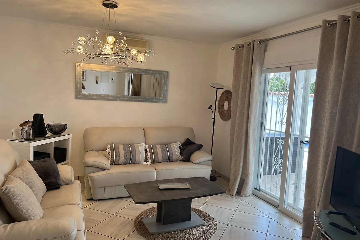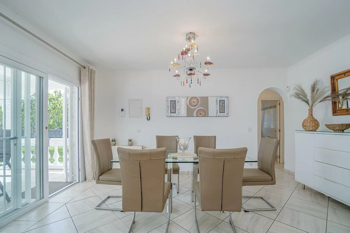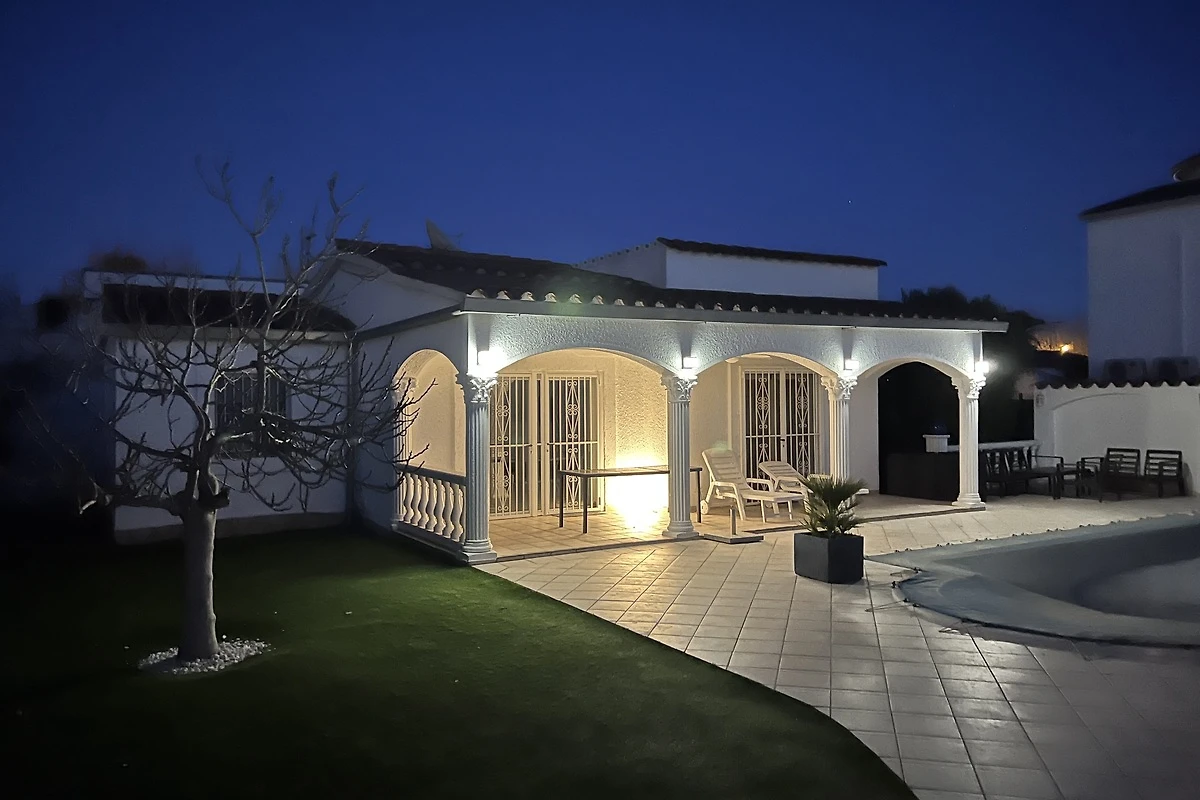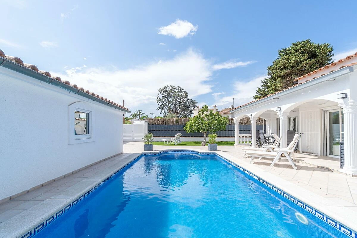 Willkommen in der Casa Bella in Empuriabrava – Ihrem perfekten Feriendomizil an der katalanischen Küste. Dieses großzügige Ferienhaus bietet auf ca. 140 m² Platz für bis zu 6 Gäste und überzeugt durch seine ebenerdige Bauweise, die einen komfortablen Zugang zu allen Bereichen ermöglicht. Drei geschmackvoll eingerichtete Schlafzimmer sorgen für erholsame Nächte, während zwei moderne Bäder mit Dusche und 1x mit Badewanne für zusätzlichen Komfort stehen.