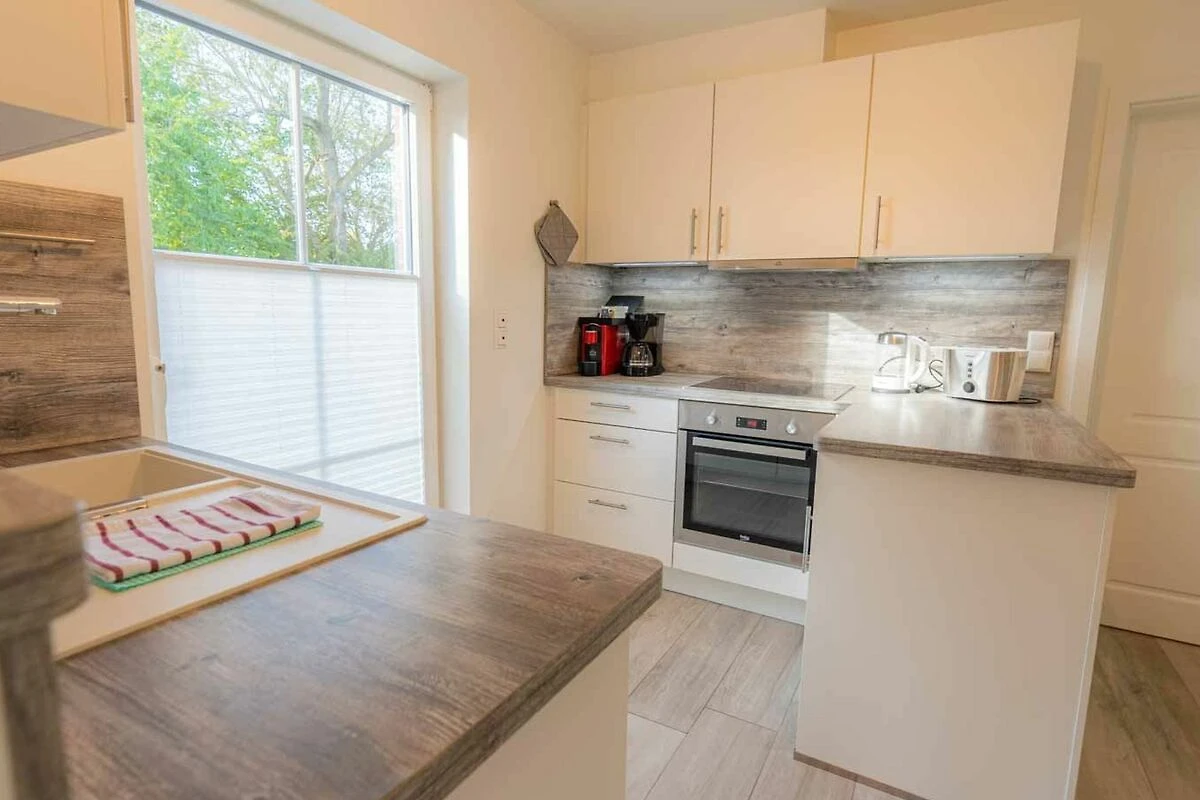 Im weitläufigen Garten mit Spielgeräten finden Gross und Klein Erholung. Drei Pkw-Stellplätze und ein abschliessbarer Fahrradschuppen sind vorhanden. Zum Ordinger Strand oder ins Dorfzentrum von St. Peter sind es nur 10 Minuten mit dem Auto.