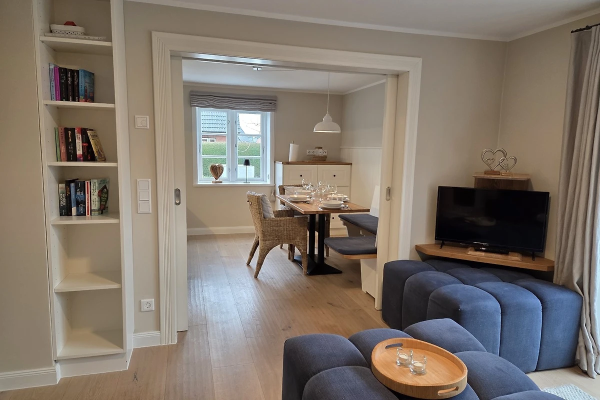Die Ferienwohnung "Tohuus" bietet auf ca. 65 m² viel Platz und Komfort für bis zu 4 Personen und ist ideal für Paare, Familien oder Freunde, die einen entspannten Aufenthalt in angenehmer Umgebung suchen. Die Wohnung liegt im Erdgeschoss in Ortsrandlage und überzeugt durch ihre durchdachte Raumaufteilung sowie eine umfangreiche Ausstattung.