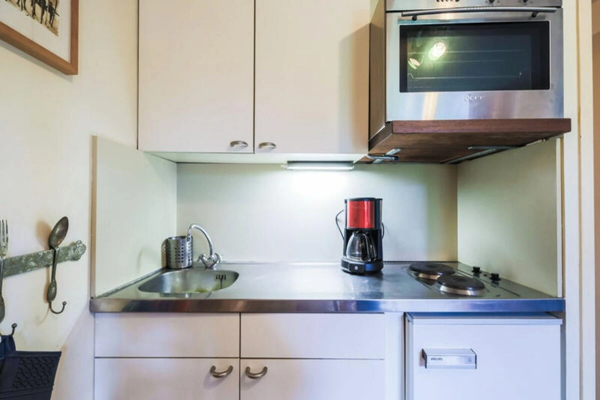 Das gemütliche Apartment besticht durch seine durchdachte Raumaufteilung und ist perfekt für kleine Familien oder Freundesgruppen. Mit einem Wohnbereich, der ein bequemes Zweisitzer-Sofa, einen Essbereich mit vier Stühlen und eine offene Küche umfasst, lässt es sich wunderbar entspannen und Zeit miteinander verbringen. Die Schlafgelegenheiten bestehen aus zwei Nischen mit Etagenbetten, eine davon ist für mehr Privatsphäre abgetrennt. Ein modernes Badezimmer mit Badewanne sorgt nach einem erlebnisreichen Tag für Entspannung. Mit 23 m² ist die Wohnung kompakt und dennoch funktional und bietet alles, was Sie für einen unvergesslichen Aufenthalt benötigen.
