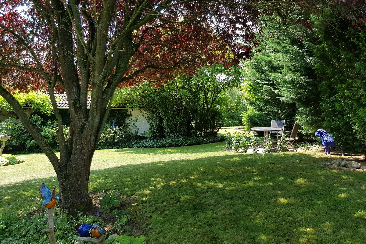 Zum Ferienhaus gehören eine lauschige überdachte Terrasse sowie eine Liegewiese innerhalb des eingewachsenen Grundstückes. Unser parkähnlich angelegter Garten kann von unseren Gästen ebenfalls mitgenutzt werden!