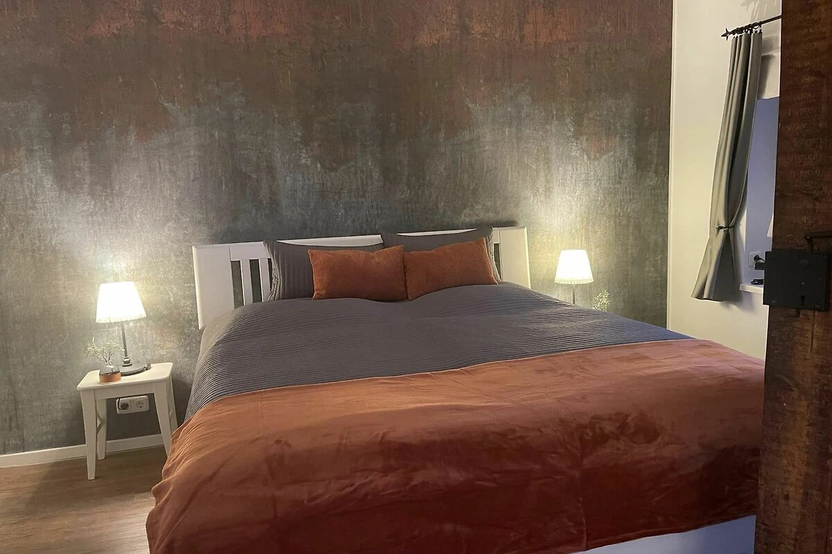 Die rund 85 m² große Ferienwohnung liegt in einem ehemaligen Nebengebäude des Hofes, das früher u. a. als Stall, Werkstatt und kleiner Laden diente. Heute bietet sie modernen Komfort für idealerweise zwei Personen; die Wohnung hat Schlafmöglichkeiten für bis zu vier Personen.
