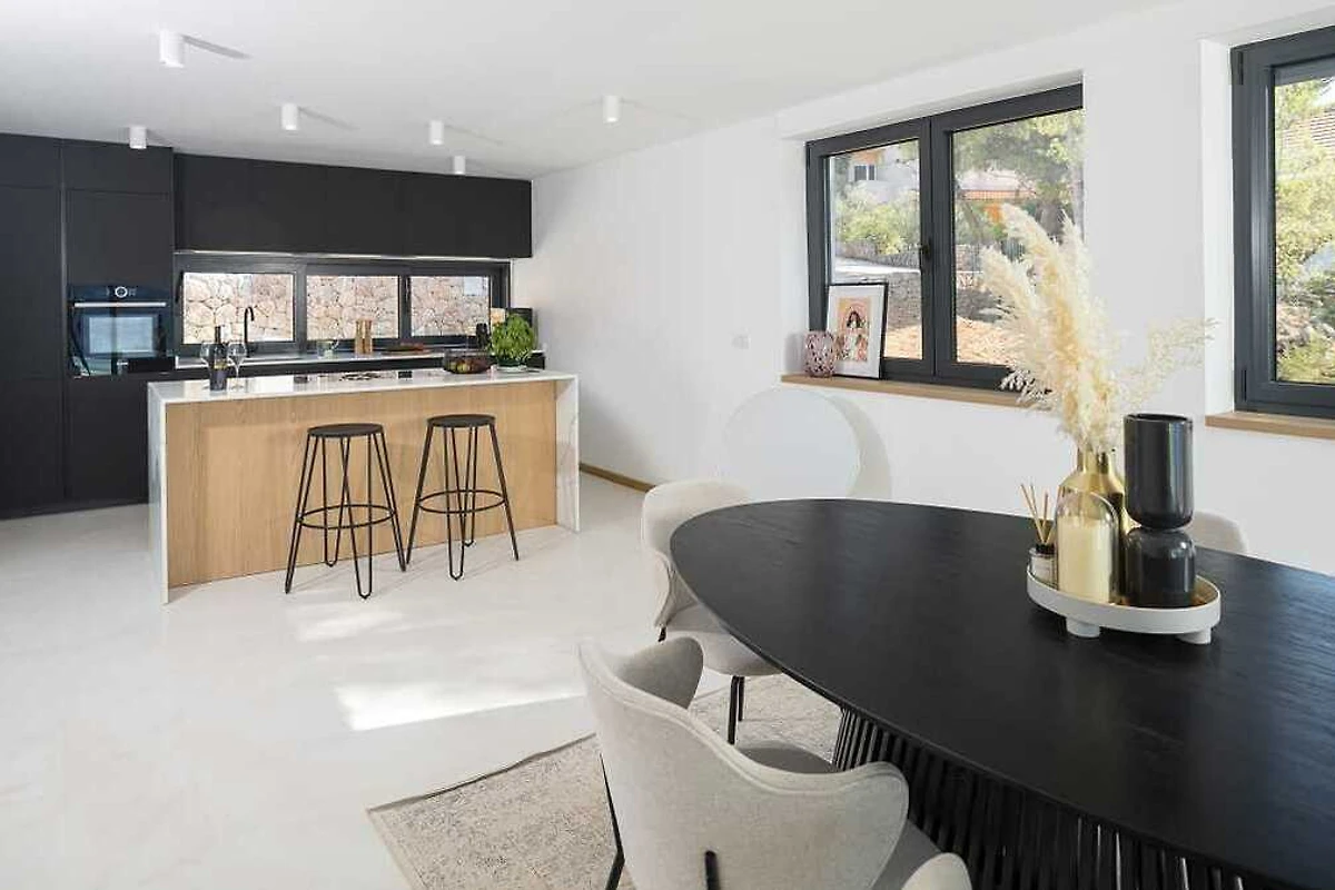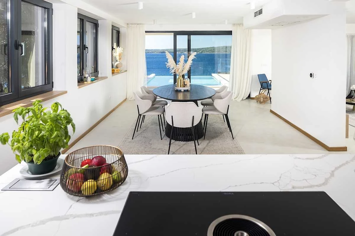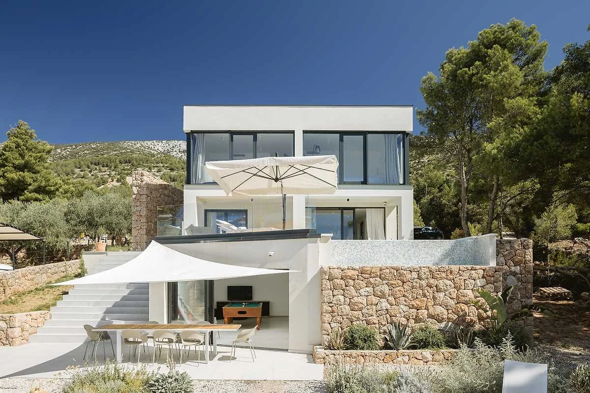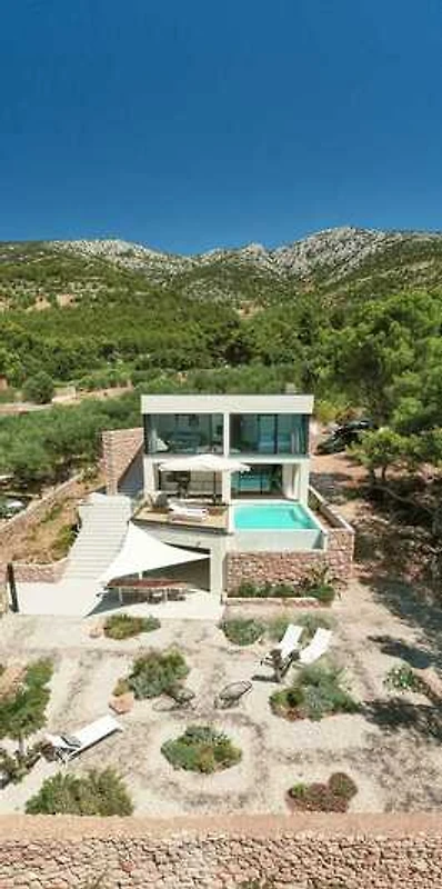 Villa Gelos ist eine wunderschöne Villa in einer ebenso wunderschönen Lage. Alles an dieser Villa ist klar, reduziert und minimalistisch gestaltet. Die dominierenden Farben sind Schwarz und Weiß, ergänzt durch Akzente in Grün und Blau. Der Blick auf das Meer ist ein ganz besonderes Blau – unbezahlbar. Die Lage von Villa Gelos hilft dabei, den Alltag hinter sich zu lassen und sich auf das Gute zu konzentrieren. Und sobald Sie einmal in das kristallklare Meer an einem der traumhaften Strände rund um Gelos eingetaucht sind – denn einige der schönsten Strände Hvars befinden sich ganz in der Nähe – gibt es kein Zurück mehr zu dem, was Sie vorher kannten.